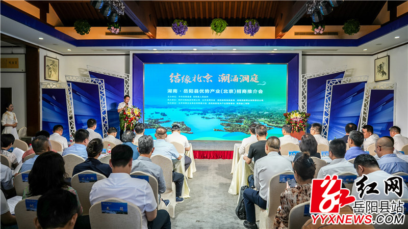 嶽陽縣融媒體中心8月27日訊(記者 周星亮)洞庭山水翠,最美首都秋。8月25日,嶽陽縣優勢產業招商推介會在京舉行,多方共敘友誼、共話合作、共謀發展,進一步聚合各方資源,推動嶽陽縣優勢產業高質量發展。全國政協常委、民革中央常委、吉林省政協副主席、民革吉林省委主委郭乃碩,中國國際貿易促進委員會國際合作部部長吳蒙,副市長郭占揚應邀出席;縣委書記肖湘暉致辭,縣委副書記、縣長吳光文主持,縣領導王靖、李櫻、敖珊,全國醫藥健康、現代農業和綠色食品加工產業企業代表,北京吉商協會、北京嶽陽企業商會嶽陽縣分會會員企業及市縣相關負責人參加。