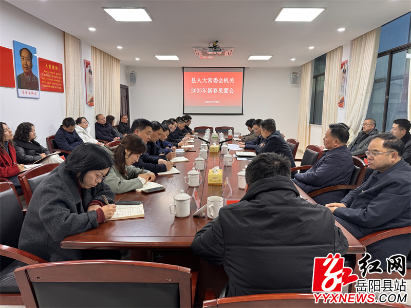 嶽陽縣融媒體中心2月6日訊(記者 尹宇豪)2月6日,縣人大常委會機關召開新春見麵會。縣人大常委會主任、黨組書記周峰出席並講話,黨組副書記、副主任王衛兵主持會議,副主任彭碧芳、胡秉陽、吳承棉、任三星及全體機關幹部參加。