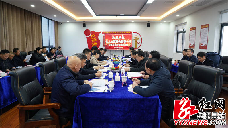 嶽陽縣融媒體中心3月7日訊(記者 付琴 周星亮)3月5日,省人大常委會黨組副書記、副主任楊浩東率調研組來我縣開展法治政府建設專項監督調研,市人大常委會主任、黨組書記馬娜,市人大常委會副主任張中於出席,縣委書記肖湘暉,縣人大常委會主任、黨組書記周峰,縣領導胡秉陽以及省、市、縣三級人大代表、相關部門負責人參加。