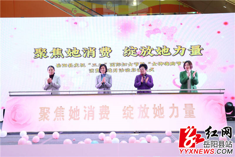 嶽陽縣融媒體中心3月7日訊(記者 羅爽 周昱君)3月7日,我縣慶祝“三八”國際婦女節暨“女神嗨購節”消費促進月活動正式啟動。縣委副書記、政法委書記宋華,縣人大常委會副主任彭碧芳,縣政協副主席彭榮欣,縣政協副主席、縣商糧局局長敖珊出席。