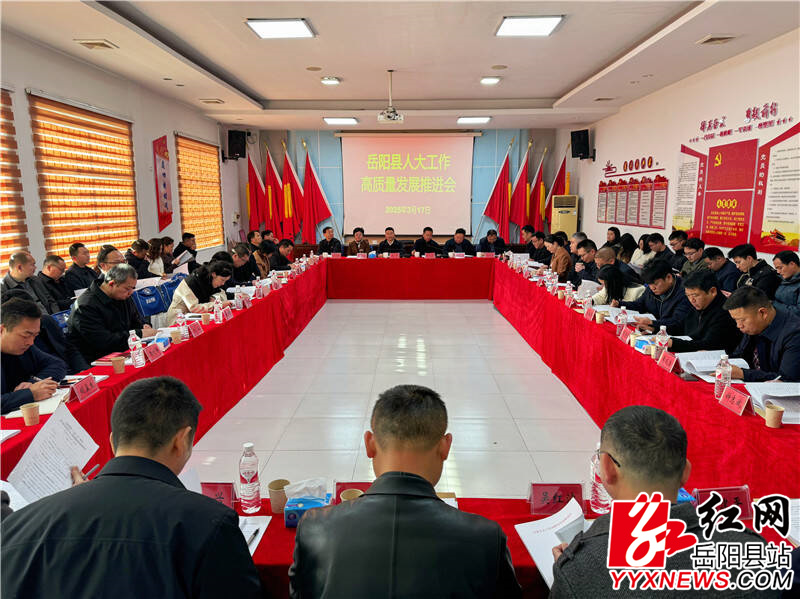 嶽陽縣融媒體中心3月17日訊(記者 周昱君)3月17日,全縣人大工作高質量發展推進會召開。縣人大常委會主任、黨組書記周峰出席並講話,黨組副書記、副主任王衛兵主持會議,副主任彭碧芳、胡秉陽、吳承棉、任三星,縣人大常委會全體機關幹部,各鄉鎮(辦事處)人大主席、人大秘書,縣直人大聯絡組組長參加會議。