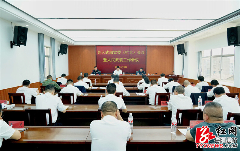 嶽陽縣融媒體中心4月10日訊(羅爽 周星亮)4月10日,縣人武部黨委(擴大)會議暨人民武裝工作會議召開。會議傳達學習湖南省軍區、嶽陽軍分區黨委全會精神,回顧總結2024年武裝工作,安排部署2025年工作。縣委書記、縣人武部黨委第一書記肖湘暉出席並講話,強調要深入貫徹習近平強軍思想和新時代政治建軍方略,忠實履行好黨管武裝政治責任,加強國防動員和後備力量的建設,推動人民武裝工作高質量發展。縣人武部黨委書記、政治委員楚海軍,縣人武部黨委副書記、部長張海波參加。