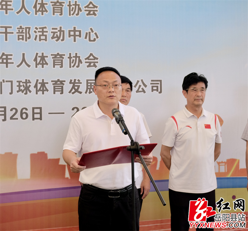 嶽陽縣融媒體中心5月26日訊(黃陽嬌)5月26日下午,嶽陽市老年人門球大賽在我縣拉開帷幕。原嶽陽市體育局黨組書記、局長、市老體協名譽主席郭摩西,市老年人體育協會主席歐陽軍等出席活動。縣委常委、組織部部長方克君致辭,市縣相關部門負責人共同見證賽事啟幕。