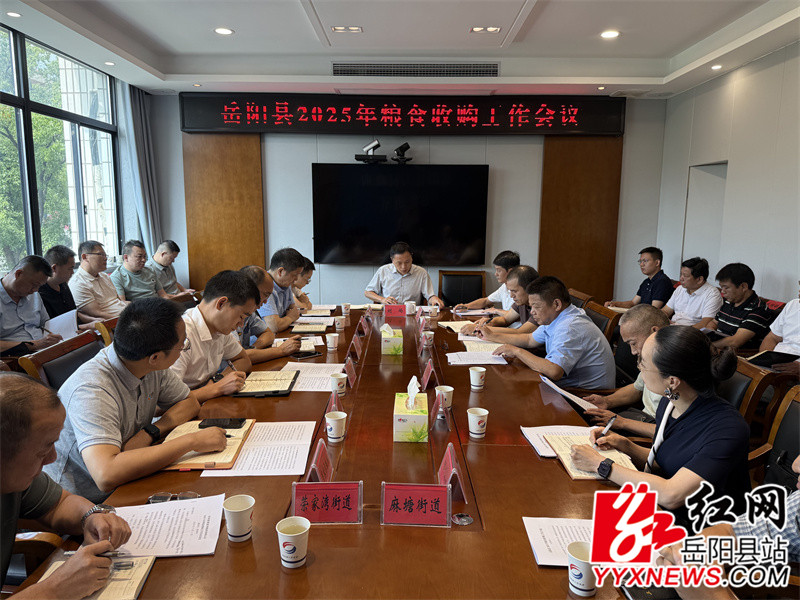 嶽陽縣融媒體中心7月11日訊(付琴)為紮實做好2025年早稻收購工作,確保糧食市場平穩有序,7月11日,副縣長劉煬主持召開2025年糧食收購工作會。縣直相關部門、各鄉鎮(街道)及糧食收儲企業負責人參加會議。