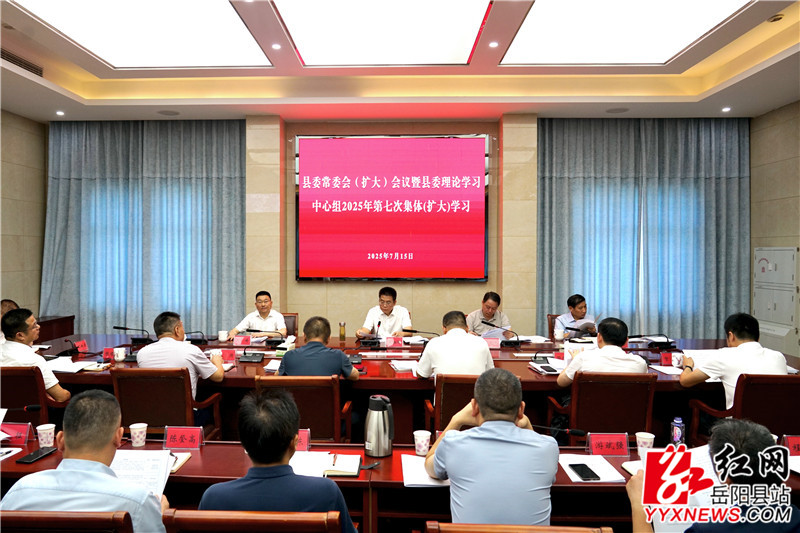 嶽陽縣融媒體中心7月16日訊(羅爽 周星亮)7月15日,縣委書記肖湘暉主持縣委常委會(擴大)會議暨縣委理論學習中心組2025年第七次集體(擴大)學習,深入學習貫徹習近平總書記關於樹立和踐行正確政績觀的重要論述,關於統計工作的重要講話和指示批示精神,關於學習教育最新重要講話和指示批示精神、中央有關文件會議精神。縣委副書記、縣長吳光文及其他在家的縣“四大家”領導班子成員,法檢“兩長”等參加。