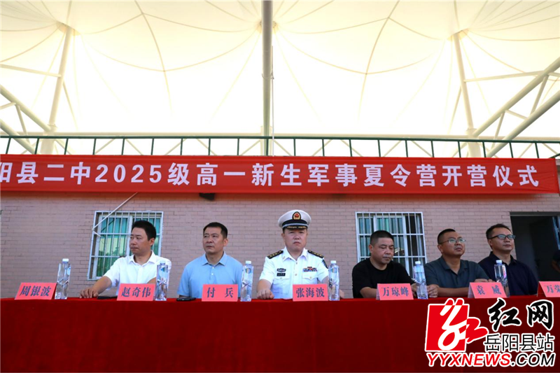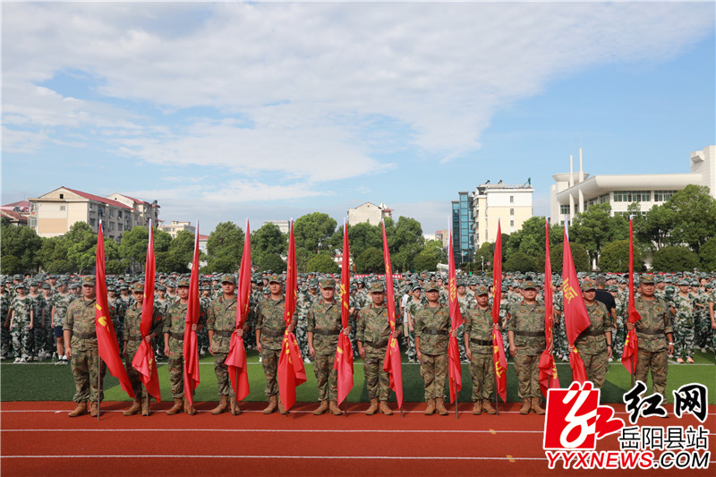 嶽陽縣融媒體中心8月22日訊(張帆 餘林)“升國旗、奏國歌…”8月22日上午,隨著國歌聲響徹整個訓練場,我縣第二中學高一全體新生麵向國旗行注目禮,標誌著我縣2025年高中階段學生軍訓工作正式啟動。縣委常委、縣人武部部長張海波出席並講話。