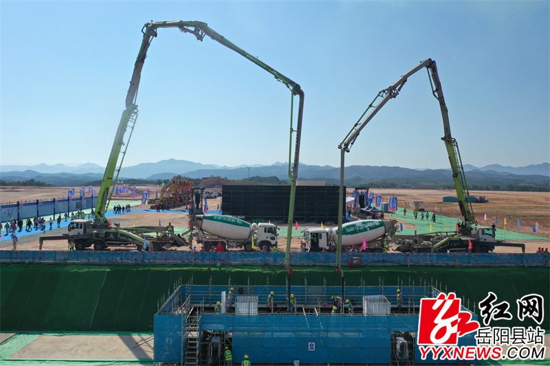 嶽陽縣融媒體中心8月28日訊(周星亮 周昱君)8月28日,湖南能源集團嶽州2×100萬千瓦燃煤發電項目主體主廠房工程第一方混凝土澆築儀式隆重舉行,標誌著嶽州電廠項目正式進入主體結構施工新階段。縣委常委、統戰部部長、協調工作專班常務副組長楊前進,副縣長續廣寧,湘能電投(嶽陽)發電有限公司董事長諶浩洪出席,中國電建集團山東電力建設第一工程有限公司、西北電力建設工程監理有限責任公司等合作方代表,縣直相關部門和鄉鎮負責人齊聚現場,共同見證項目建設關鍵節點。