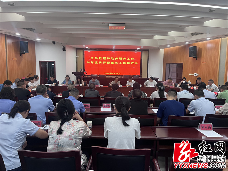 嶽陽縣融媒體中心8月29日訊(劉詩棋)8月28日,全縣數據和政務服務工作半年度講評暨重點工作推進會召開。會議總結前段數據和政務服務工作情況,安排部署下階段重點任務。副縣長、縣公安局局長劉斌清出席會議並講話,進駐政務服務大廳單位首席代表和行政審批股長參會。