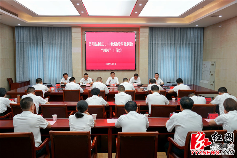 嶽陽縣融媒體中心9月30日訊(羅爽 周星亮)9月30日上午,縣委書記肖湘暉主持召開國慶、中秋期間深化糾治“四風”工作會議,深入學習貫徹習近平總書記關於加強作風建設的重要指示精神,傳達學習中央紀委國家監委和省、市紀委監委有關文件和會議精神,對節日期間糾治“四風”工作進行再強調、再部署、再落實。縣委副書記、縣長吳光文及其他縣“四大家”領導參加。
