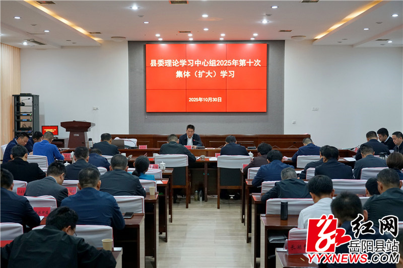嶽陽縣融媒體中心10月31日訊(羅爽 周星亮)10月30日,縣委理論學習中心組舉行2025年第十次集體(擴大)學習,深入學習《習近平談治國理政》第五卷,引導廣大黨員、幹部持之以恒讀原著、學原文、悟原理,持續增強學思想、悟思想、用思想的自覺性和堅定性,深刻領悟“兩個確立”的決定性意義、堅決做到“兩個維護”,切實把學習成果轉化為幹事創業、推動嶽陽縣高質量發展的實際成效。縣委書記肖湘暉主持並講話,縣委副書記、縣長吳光文及其他在家的縣“四大家”領導班子,法檢“兩長”等參加。