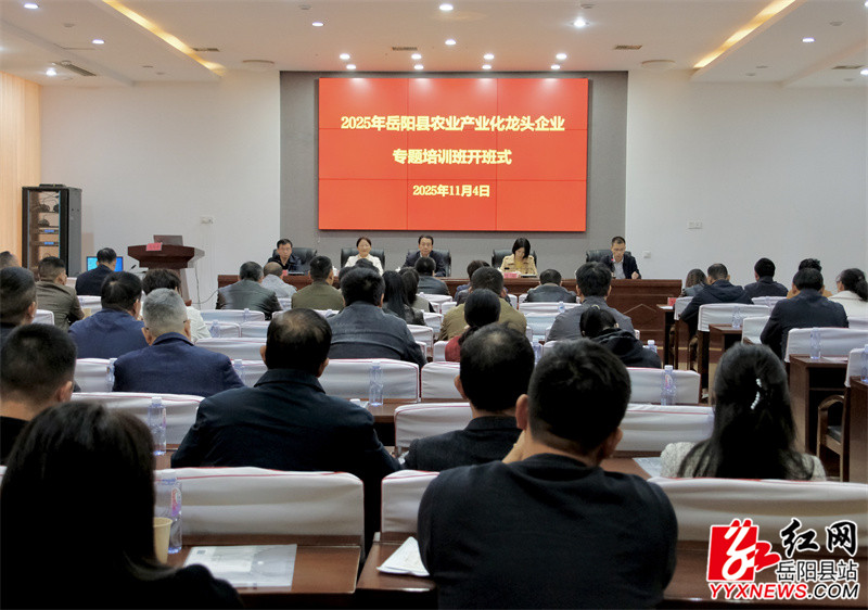 嶽陽縣融媒體中心11月4日訊(黃陽嬌)11月4日,以 “興企強農 提質增效” 為主題的全縣農業產業化龍頭企業高質量發展專題培訓班在縣委黨校開班。本次培訓旨在通過係統授課、經驗交流,著力提升我縣農業產業化龍頭企業的核心競爭力和可持續發展能力。湖南農業大學黨委副書記陳光輝,副縣長李櫻出席並講話,縣直相關部門負責人、全縣農業產業化龍頭企業代表、產業集群項目實施主體負責人及縣派農業科技特派員參加。