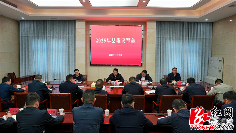 嶽陽縣融媒體中心11月18日訊(羅爽 周星亮)11月18日,我縣舉行縣委議軍會暨“軍事日”活動,會議傳達學習習近平總書記關於國防和軍隊建設的重要論述摘編,聽取2025年黨管武裝工作情況匯報,研究相關工作。縣委書記、縣人武部黨委第一書記肖湘暉主持會議並講話。