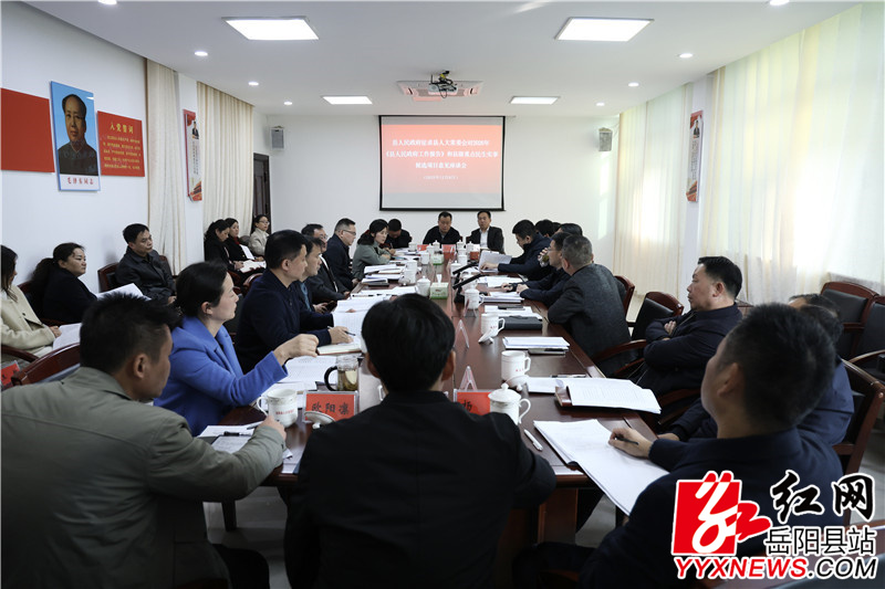嶽陽縣融媒體中心12月10日訊(尹宇豪 張帆)12月8日,縣人民政府征求縣人大常委會對2026年《縣人民政府工作報告》和縣級重點民生實事候選項目意見座談會召開,縣委副書記、縣長吳光文出席會議並講話,縣人大常委會黨組書記、主任周峰主持會議,縣委常委、常務副縣長賀立,縣人大常委會黨組副書記、副主任王衛兵,副主任彭碧芳、胡秉陽 、吳承棉、任三星參加。