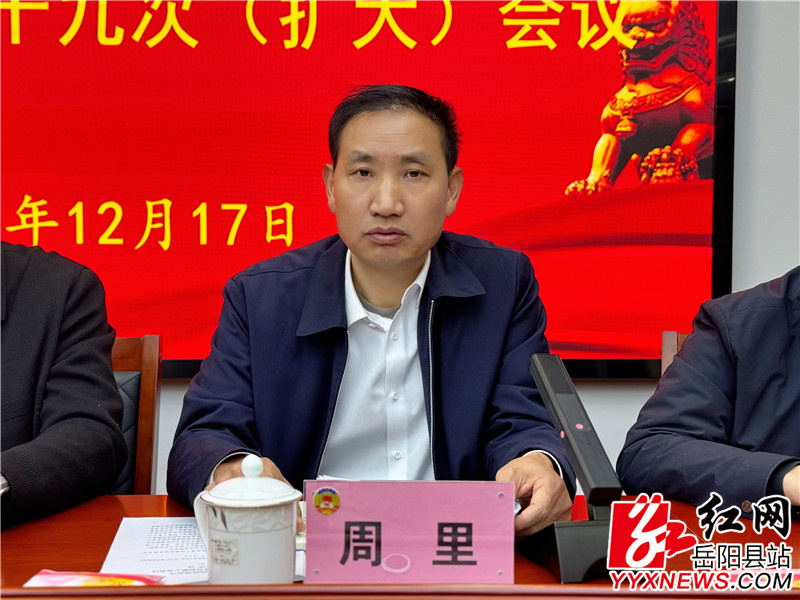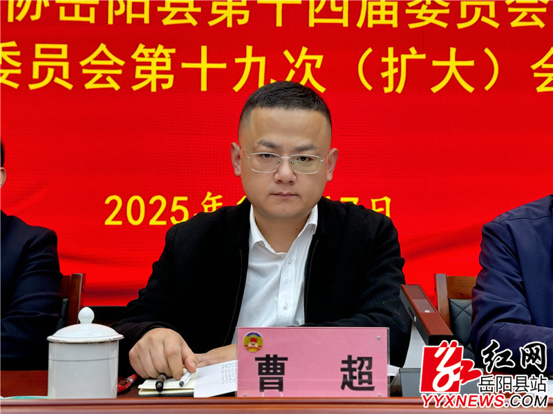 嶽陽縣融媒體中心12月17日訊(周昱君)12月17日,縣政協第十四屆委員會常務委員會第十九次(擴大)會議召開。縣委副書記、宣傳部部長曹超,縣政協黨組書記、主席周裏,縣委常委、組織部部長方克君,副縣長張文毅,副主席劉衛兵、張忠新、王敏、敖珊出席。