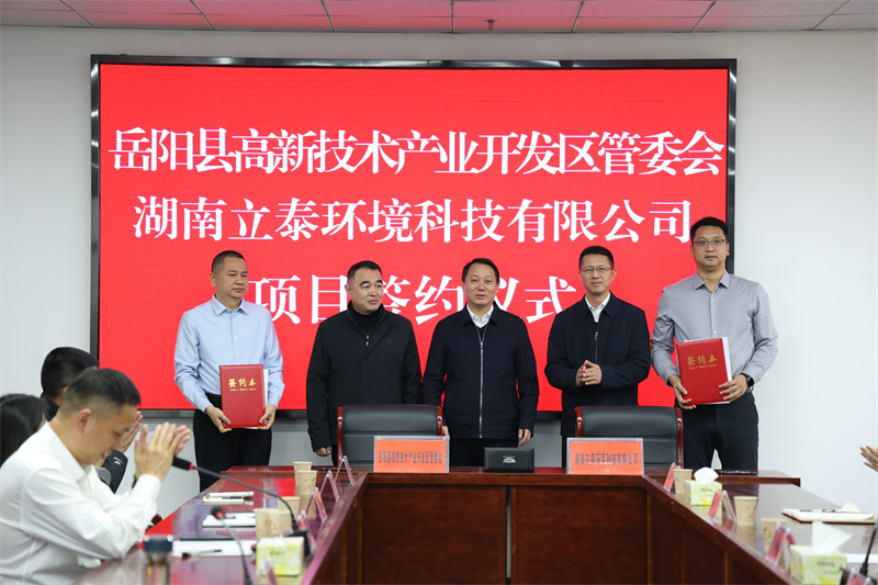 儀式現場,縣高新技術產業開發區與湖南立泰環境科技有限公司正式簽署MOFs材料規模化生產及成型應用項目合作協議,該項目投資2.18億元,預計於2026年建成投產,推進MOFs複合材料、脫硫活性炭及鋼鐵燒結尾氣CO催化劑等核心環保新材料產品,致力於打造國內MOFs材料產業化基地,為區域經濟發展與產業升級注入強勁動能。