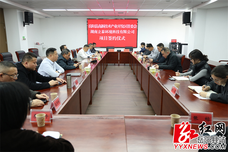 嶽陽縣融媒體中心12月23日訊(尹宇豪 張帆)12月22日,縣高新技術產業開發區與湖南立泰環境科技有限公司舉行MOFs材料規模化生產及成型應用項目簽約儀式。縣委副書記、縣長吳光文,嶽陽興長石化股份有限公司總經理付鋒,黨委書記鄒海波出席簽約儀式。副縣長劉煬主持簽約儀式。