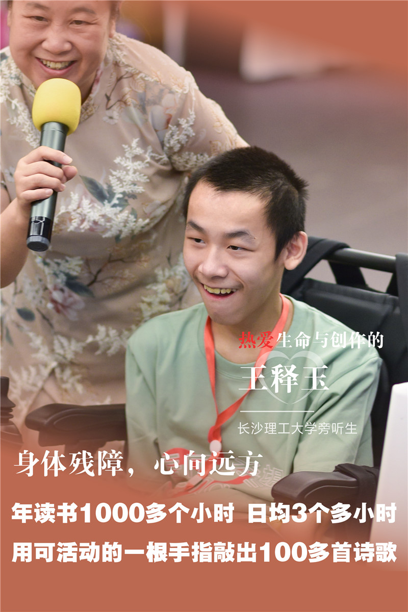 縱然出生時因窒息缺氧腦細胞損傷,成為一名腦癱患者,王釋玉也從未停止書寫生命的讚歌。