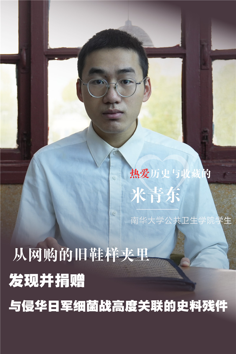 熱愛曆史與收藏的米青東,從網購的舊鞋樣夾裏,發現了撰寫有日語“破傷風”“克山病”字樣的紙片。
