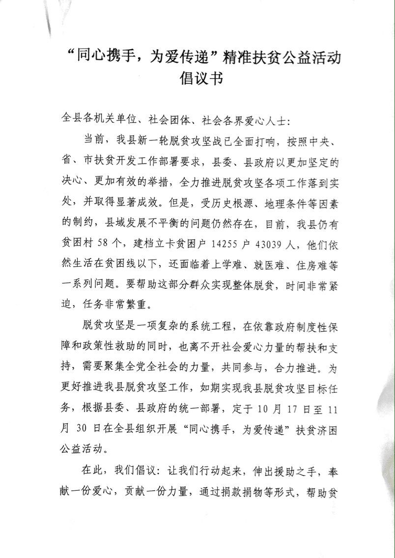 “同心攜手,為愛傳遞”精準扶貧公益活動倡議書