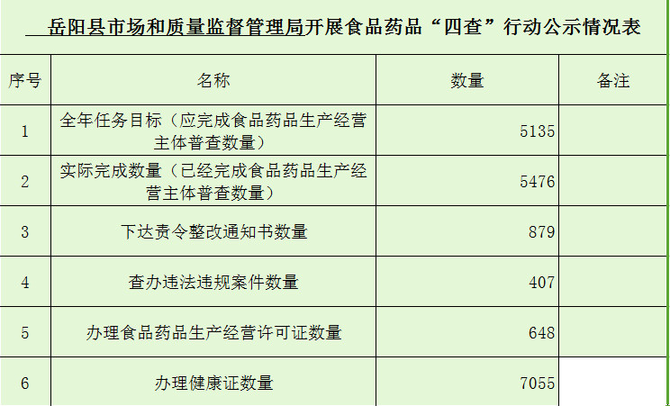 嶽陽縣市場和質量監督管理局對照嶽陽縣2016-省市重點民生實事項目考核要求,已全麵完成目標任務,現將完成情況公示如下: