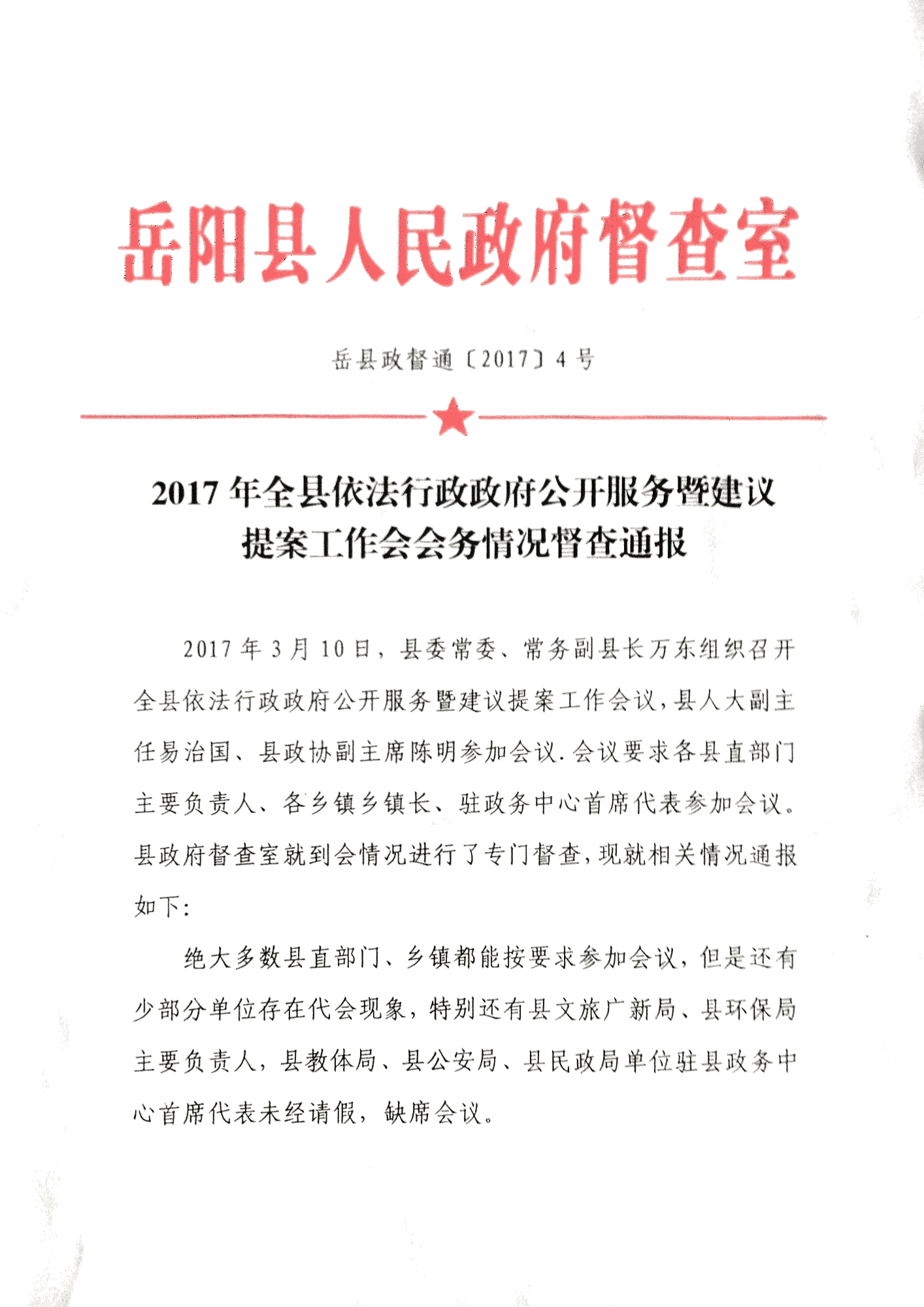 2017年全縣依法行政政府公開服務暨建議提案工作會會務情況督察通報