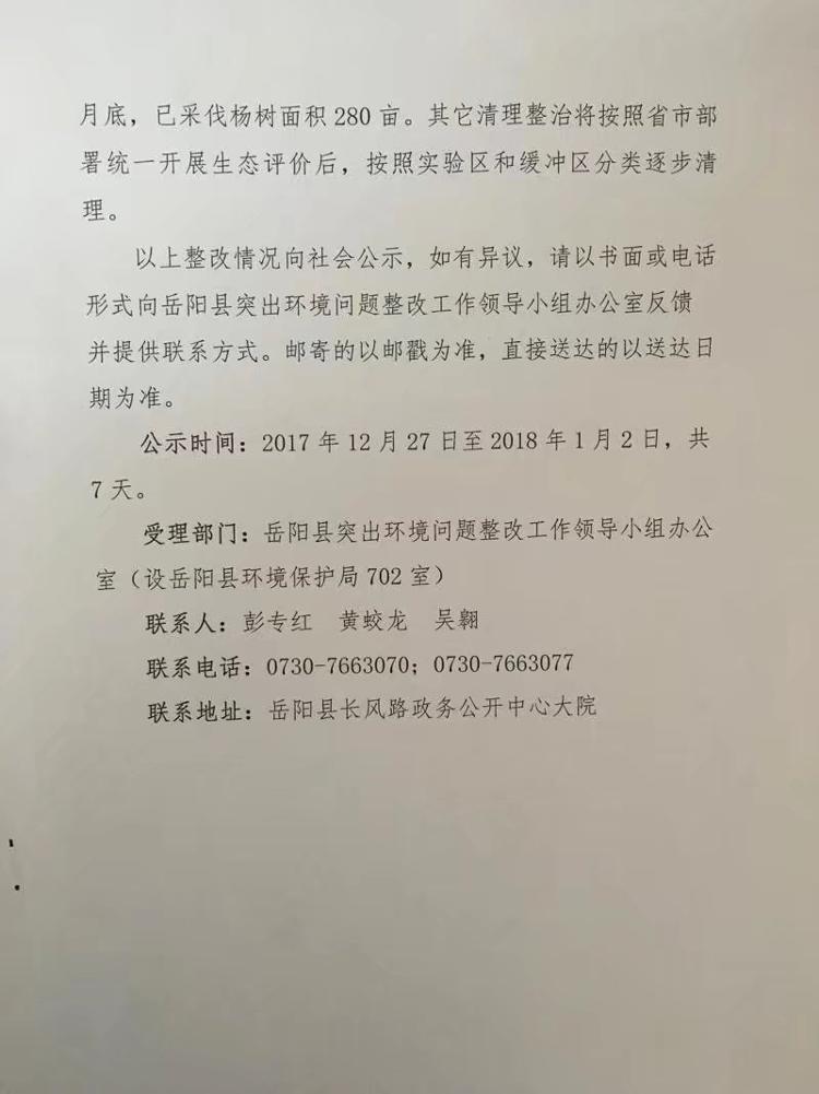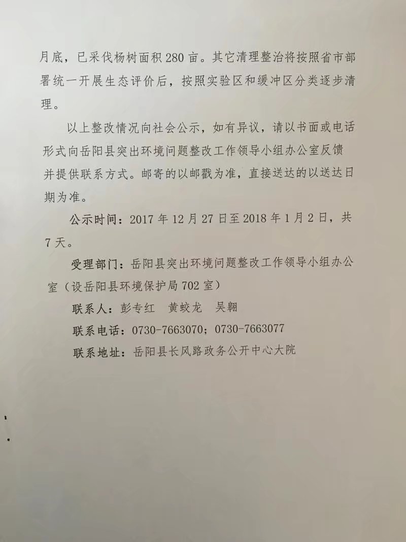 嶽陽縣突出環境問題整改工作領導小組辦公室關於中央環保督察反饋意見整改銷號的公示A12