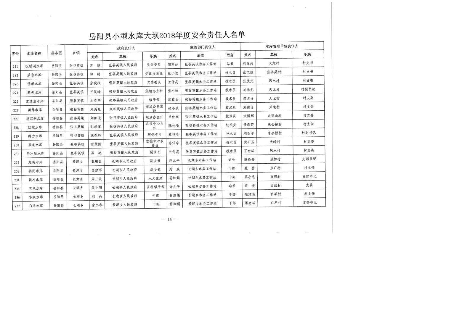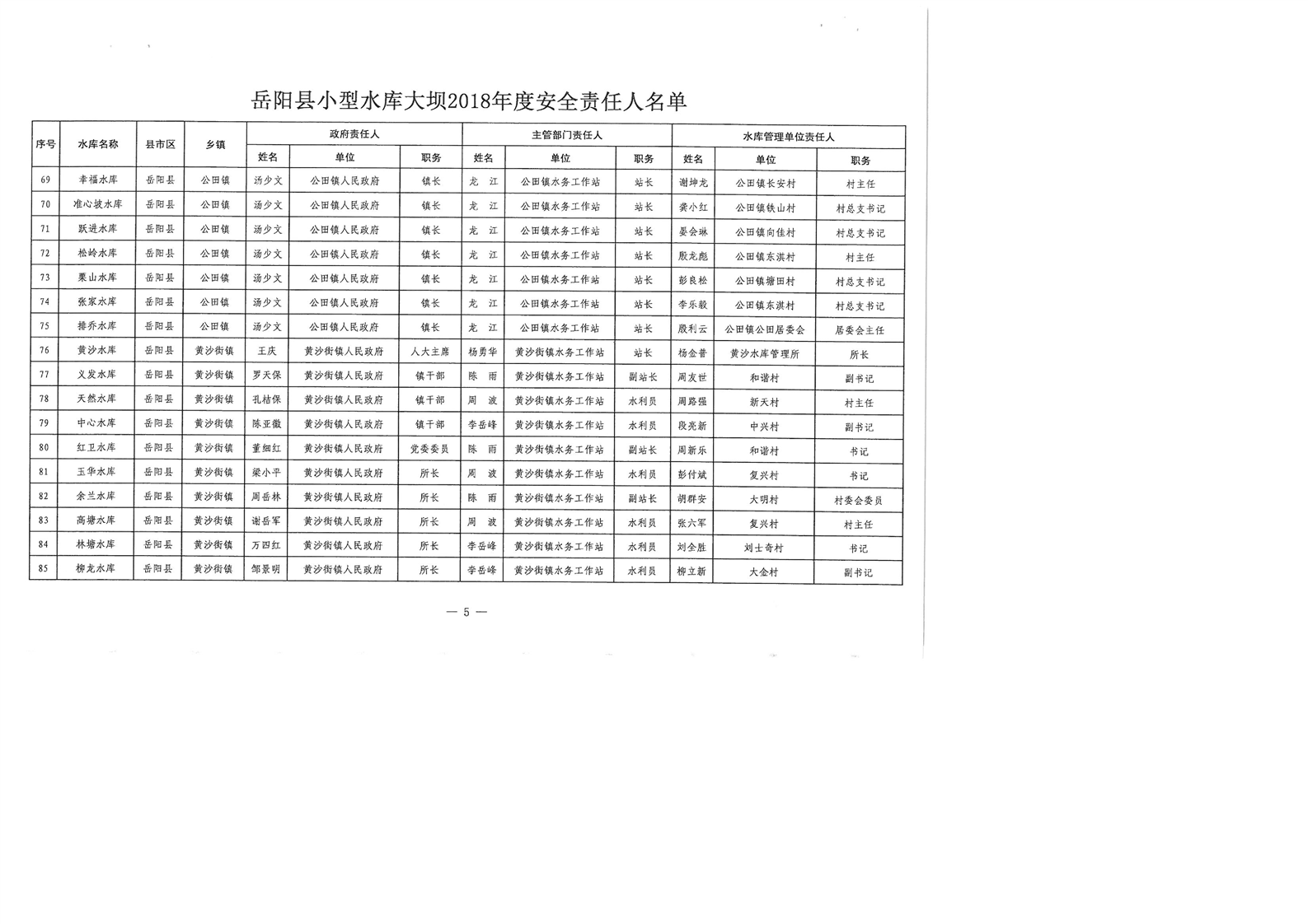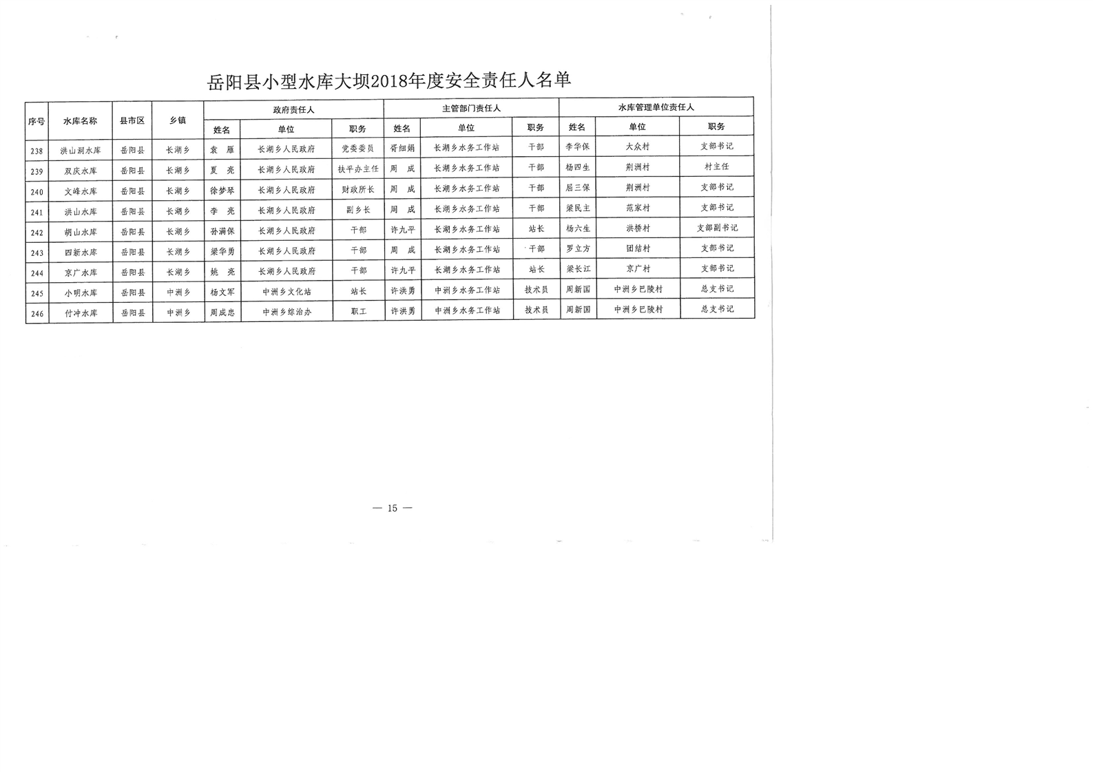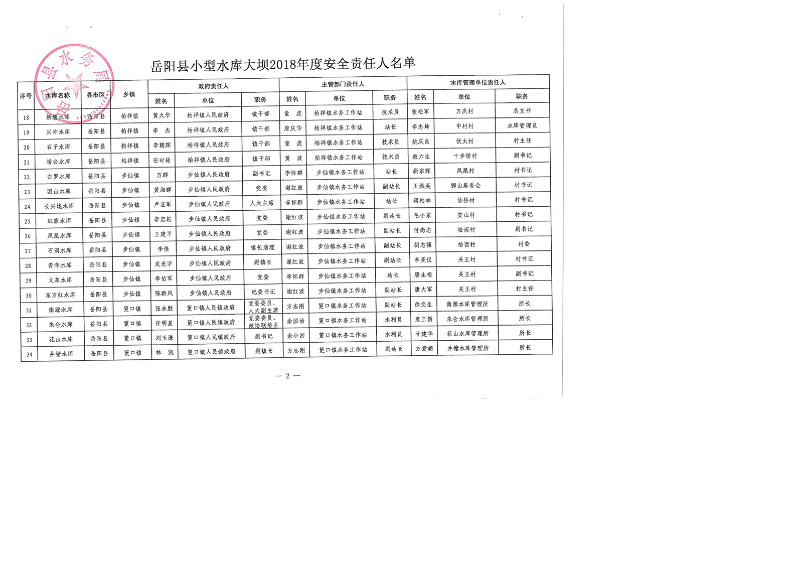 嶽陽縣小型水庫大壩2018年度安全責任人名單公示