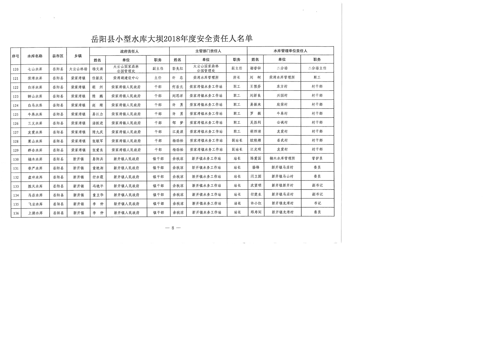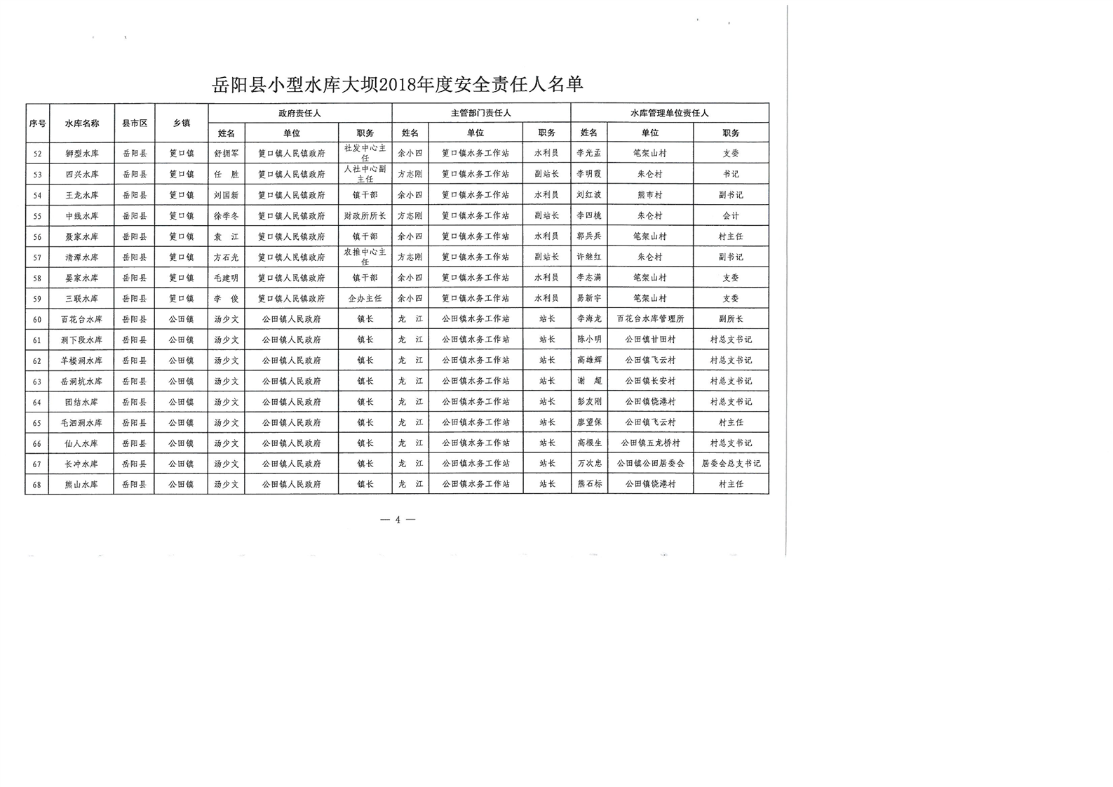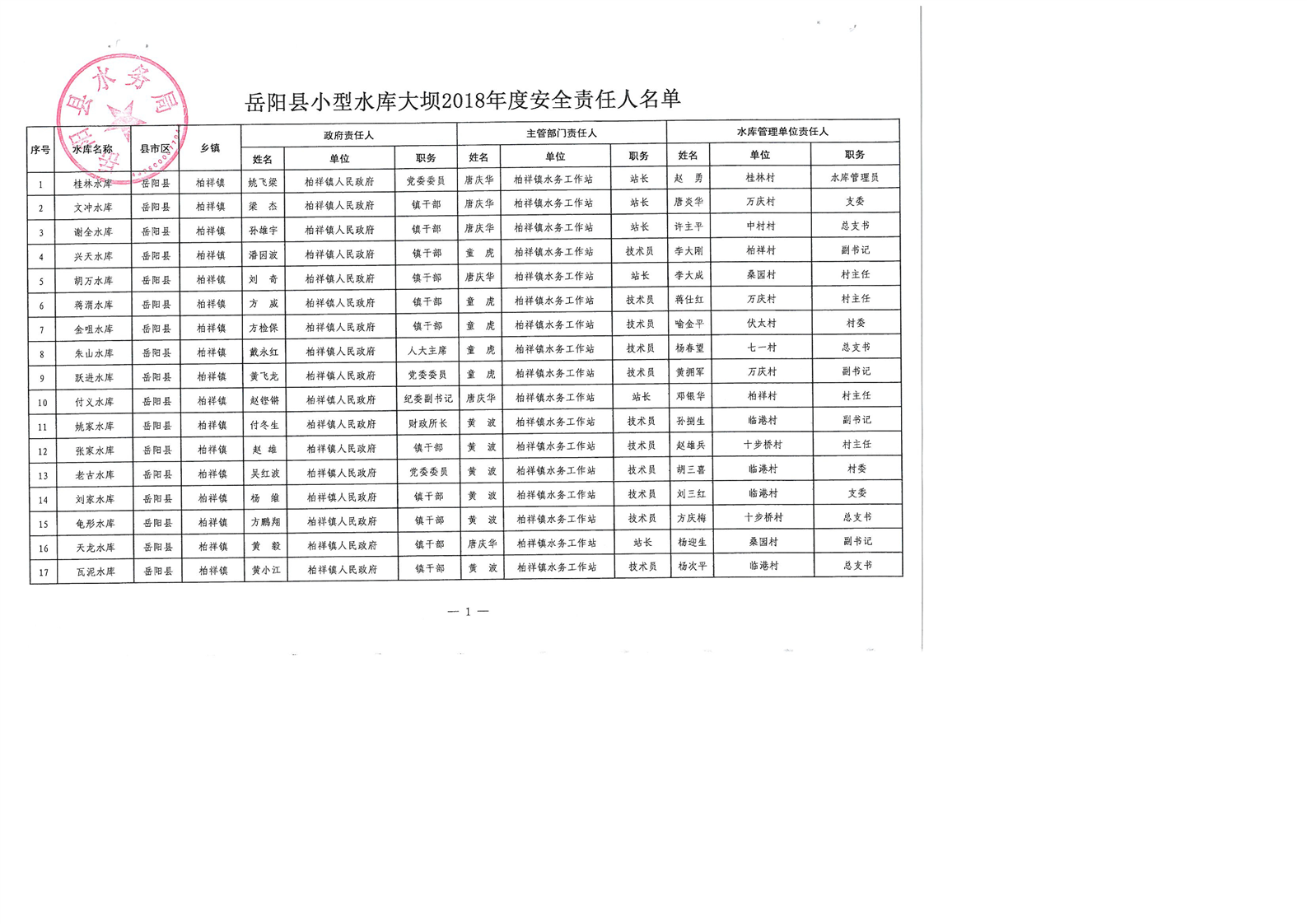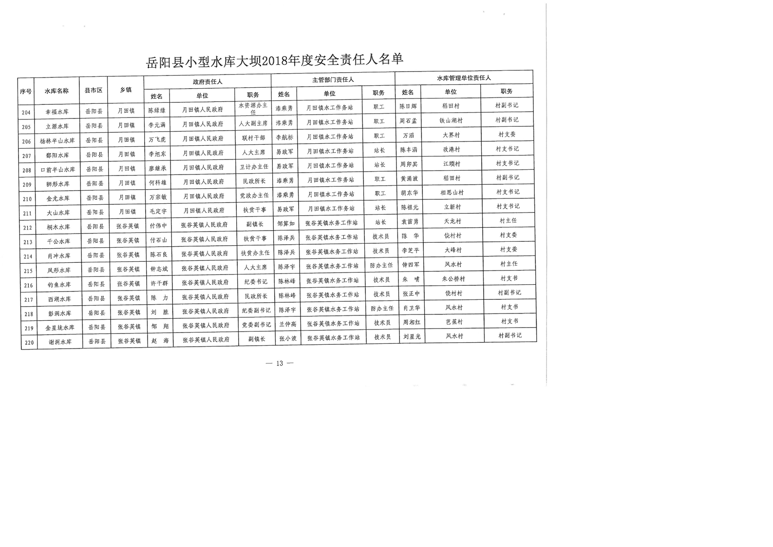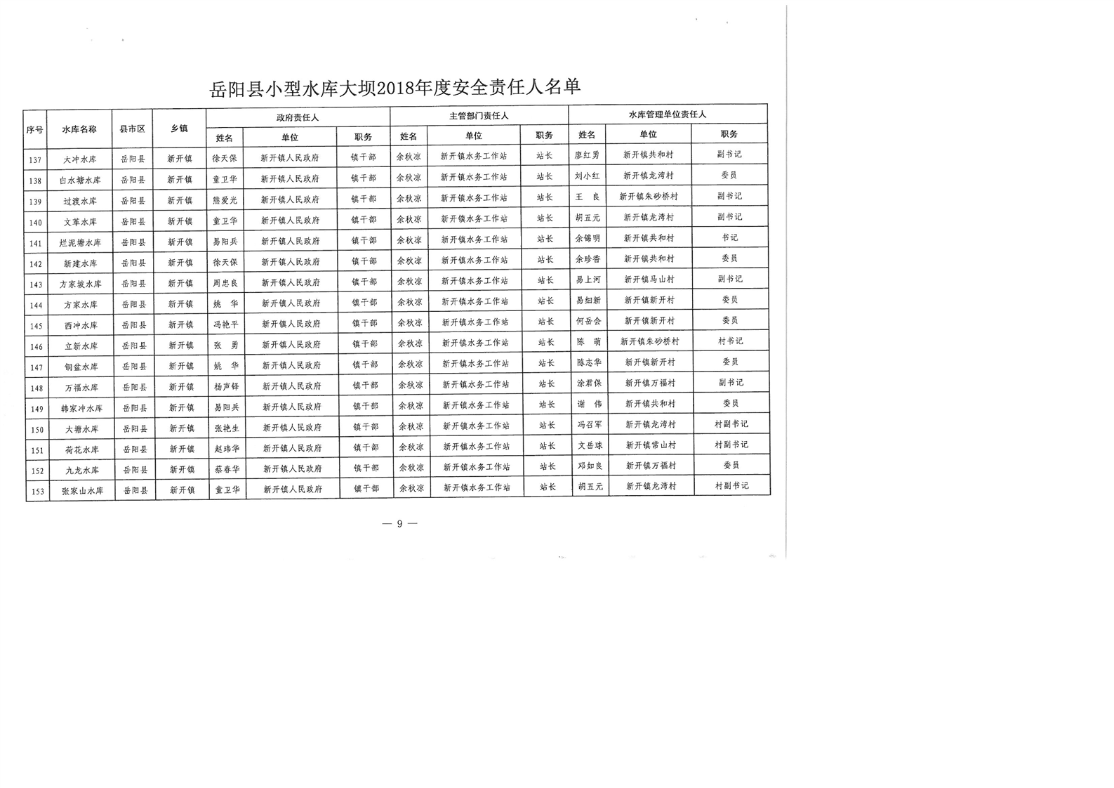 嶽陽縣小型水庫大壩2018年度安全責任人名單公示