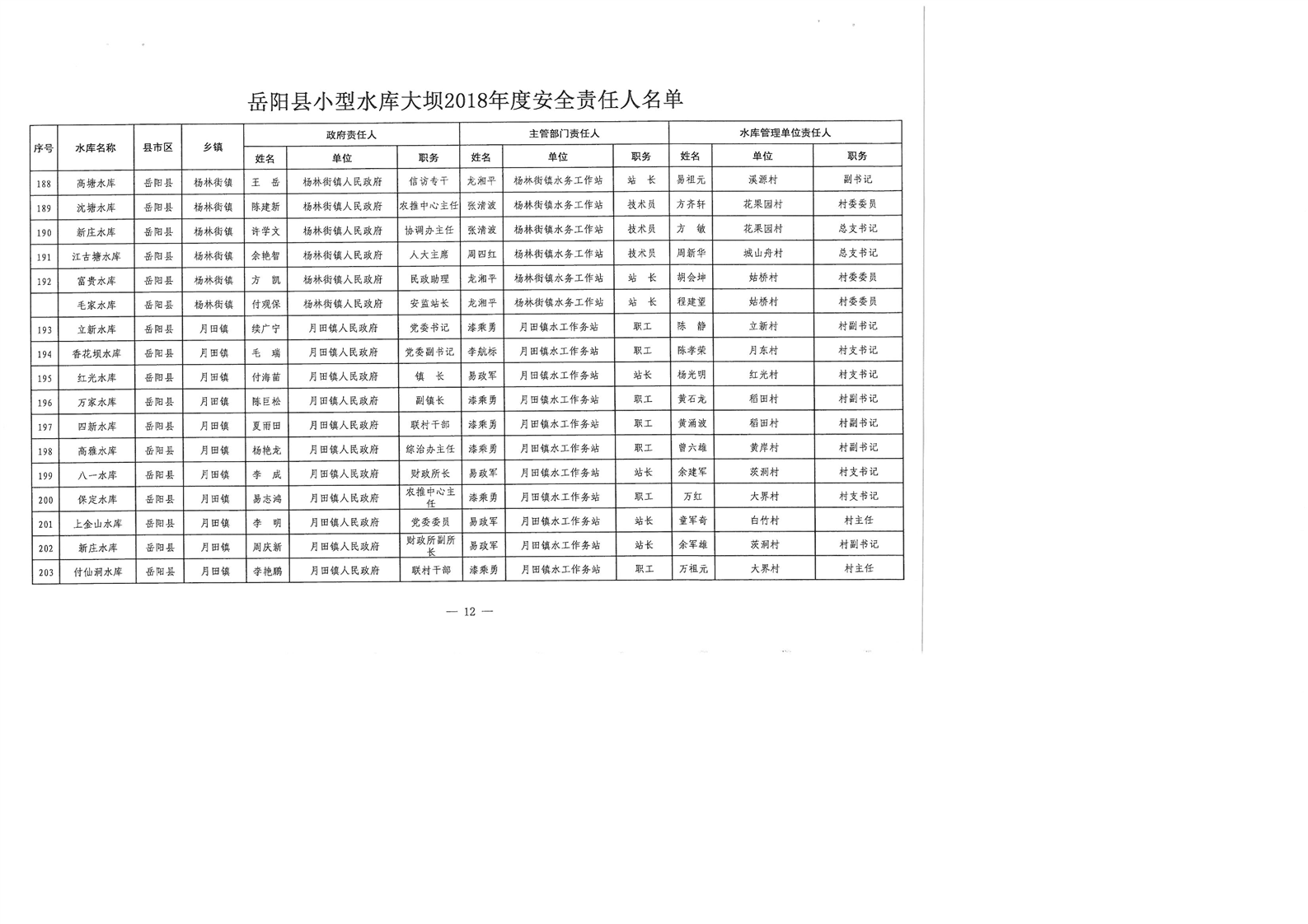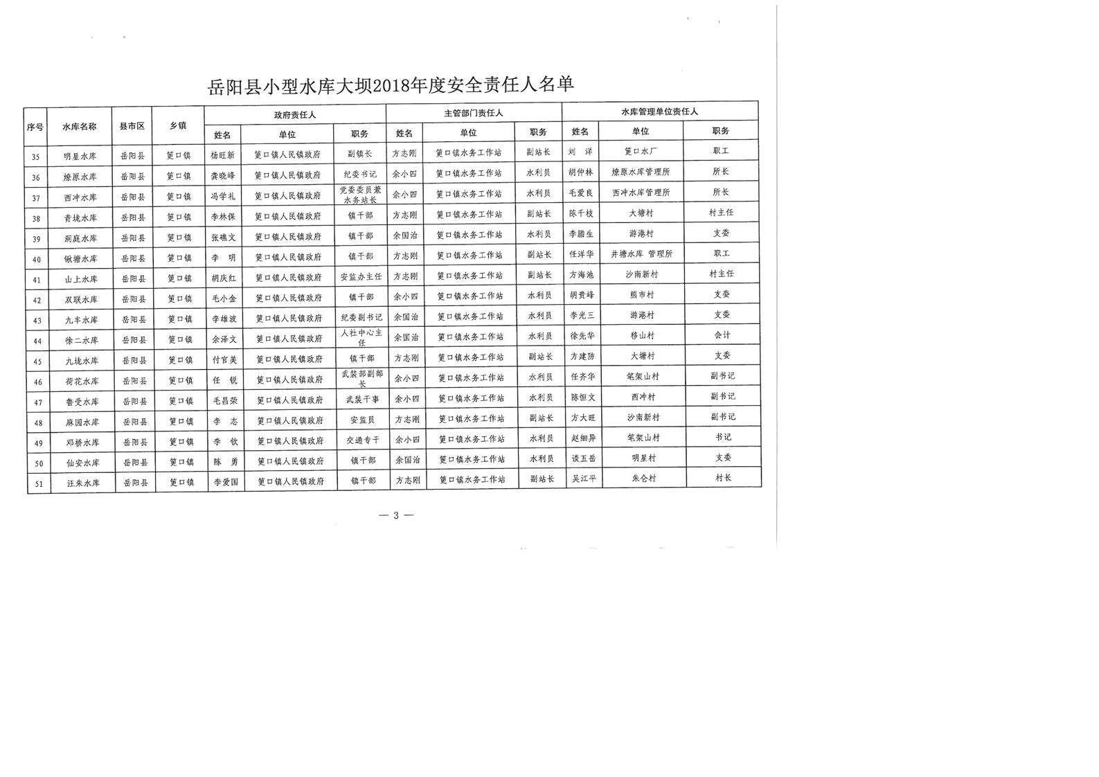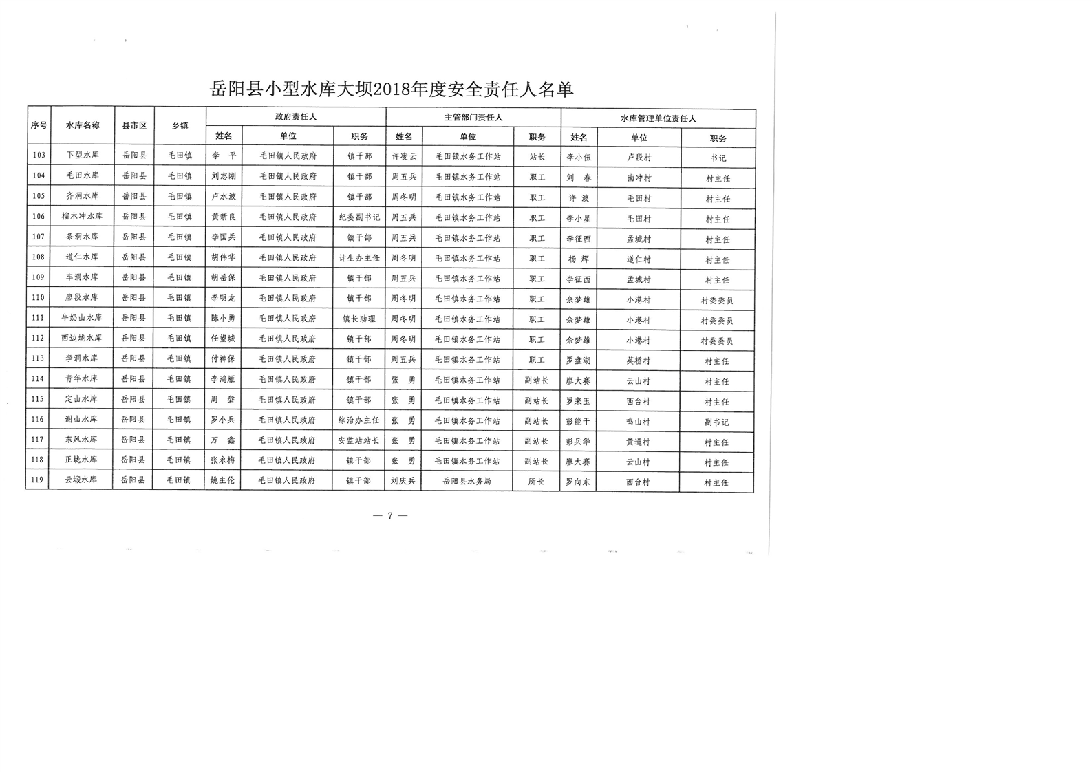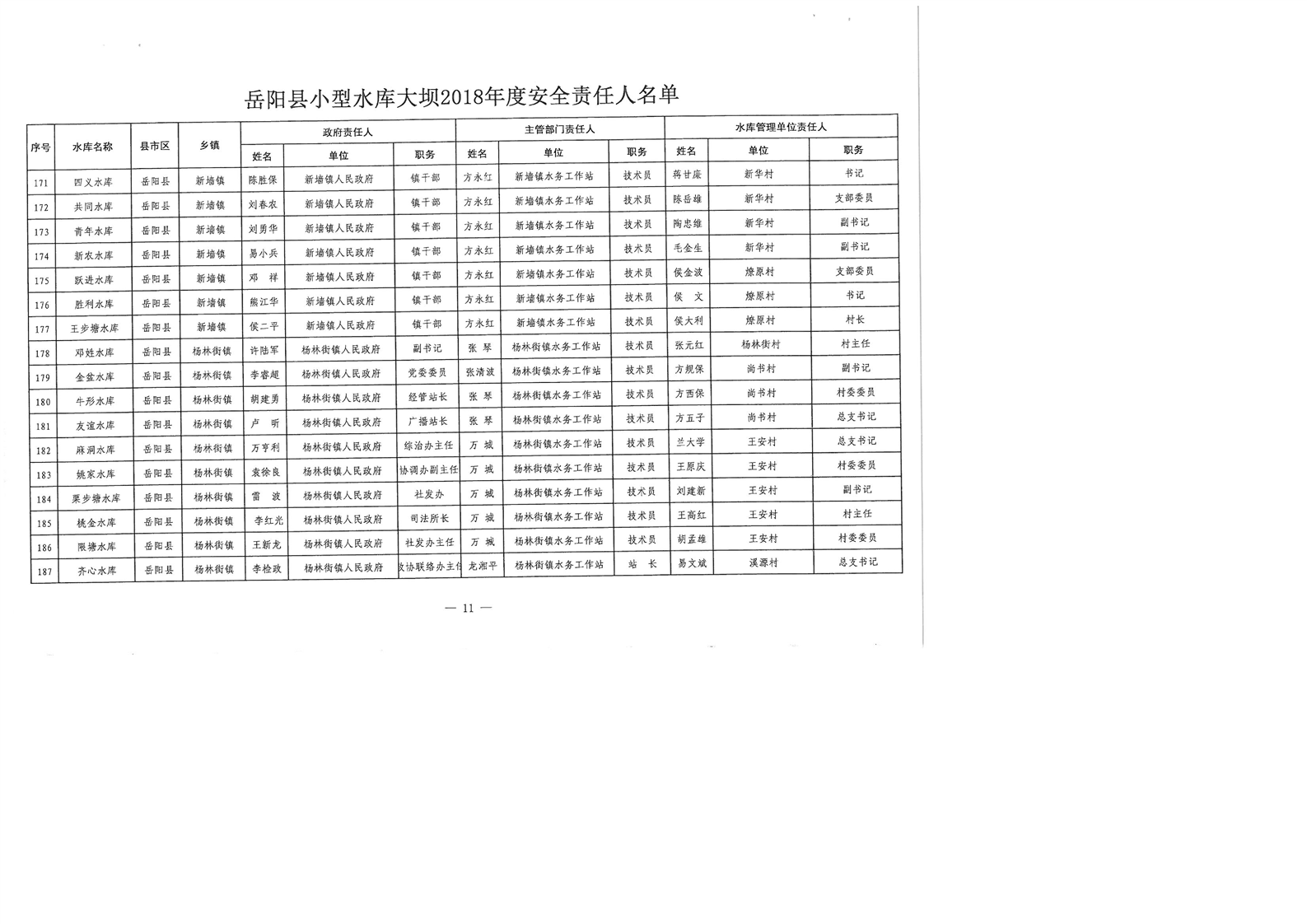 嶽陽縣小型水庫大壩2018年度安全責任人名單公示