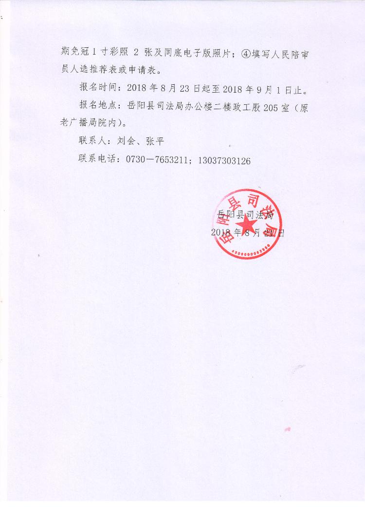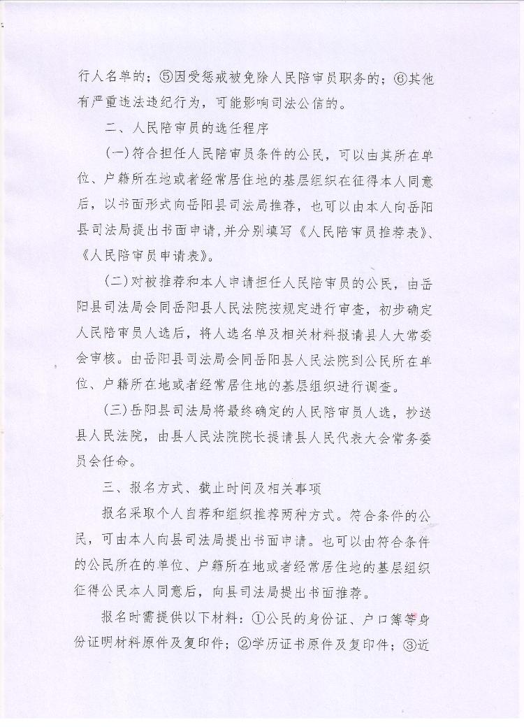 嶽陽縣司法局2018年公開選任人民陪審員公告
