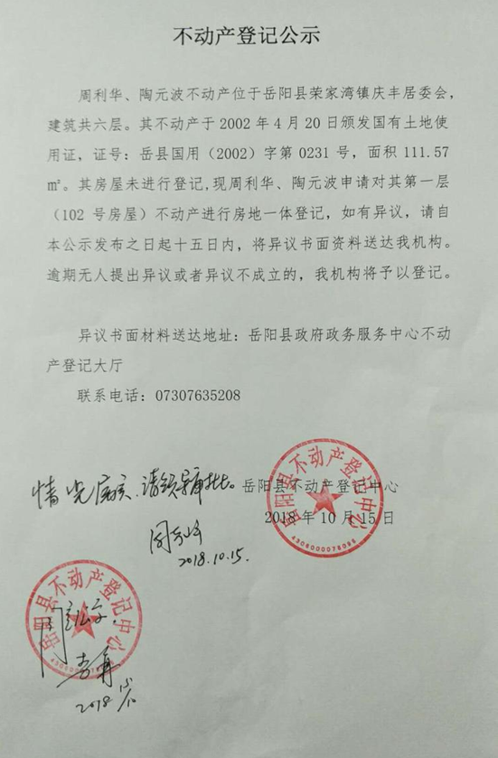 周利華、陶元波不動產登記公示