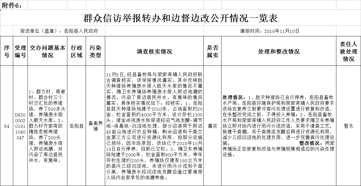 中央生態環境保護督察“回頭看”群眾信訪舉報轉辦和邊督邊改公開情況一覽表 (2018年11月10日)