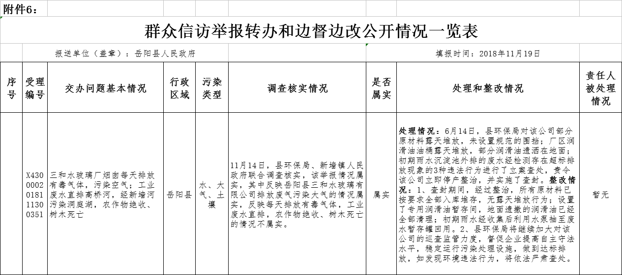 中央生態環境保護督察“回頭看”群眾信訪舉報轉辦和邊督邊改公開情況一覽表 (2018年11月19日)