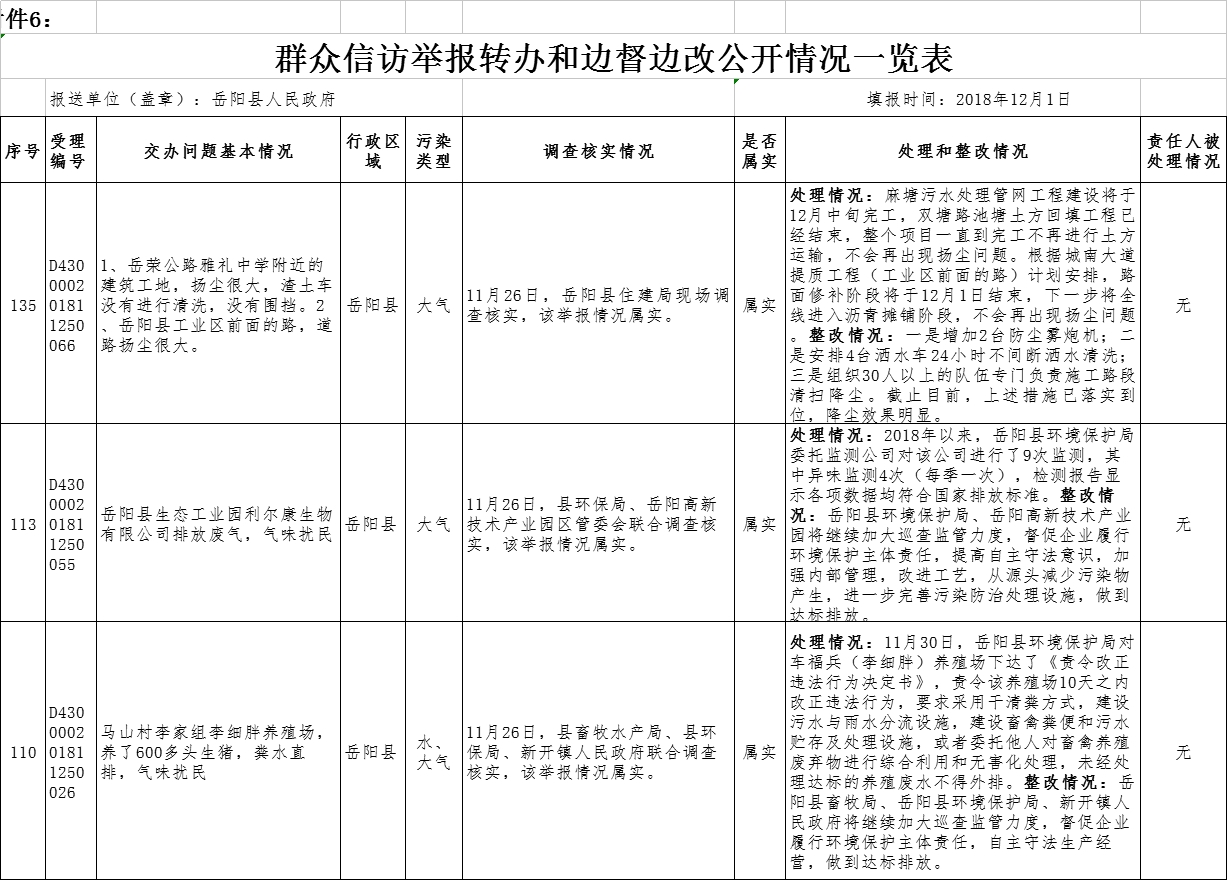 中央生態環境保護督察“回頭看”群眾信訪舉報轉辦和邊督邊改公開情況一覽表 (2018年12月1日)