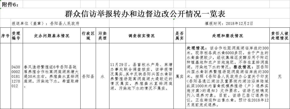 中央生態環境保護督察“回頭看”群眾信訪舉報轉辦和邊督邊改公開情況一覽表 (2018年12月3日)