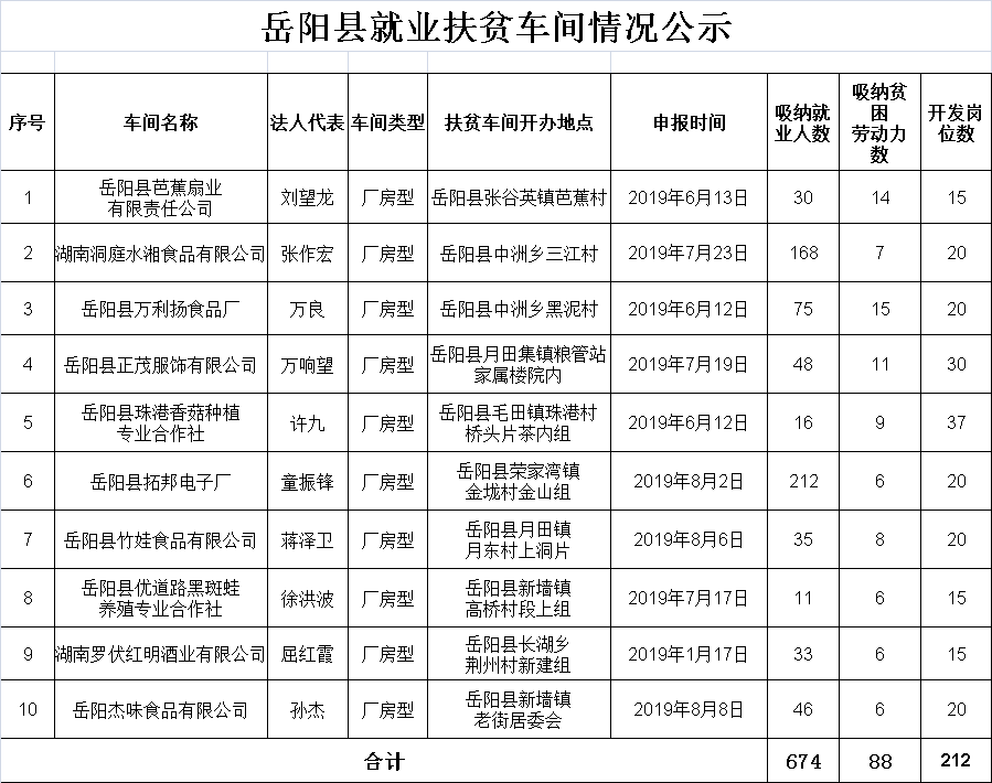 嶽陽縣就業扶貧車間情況公示