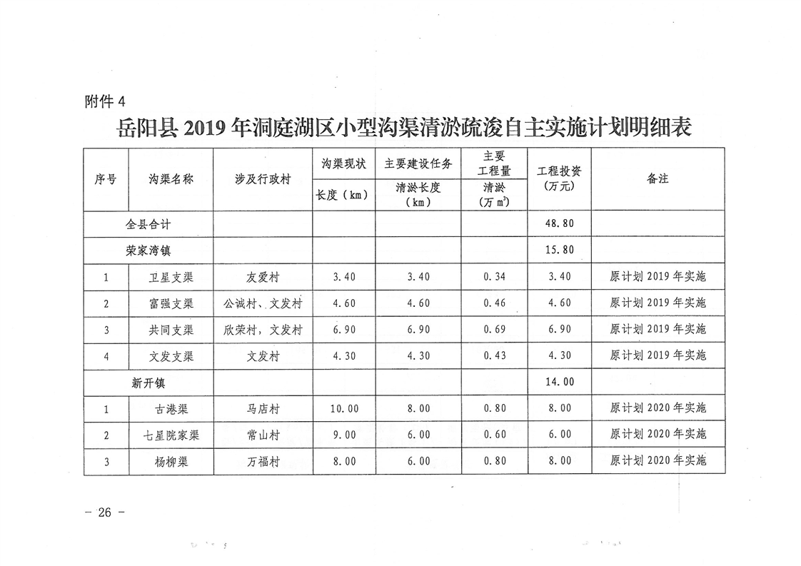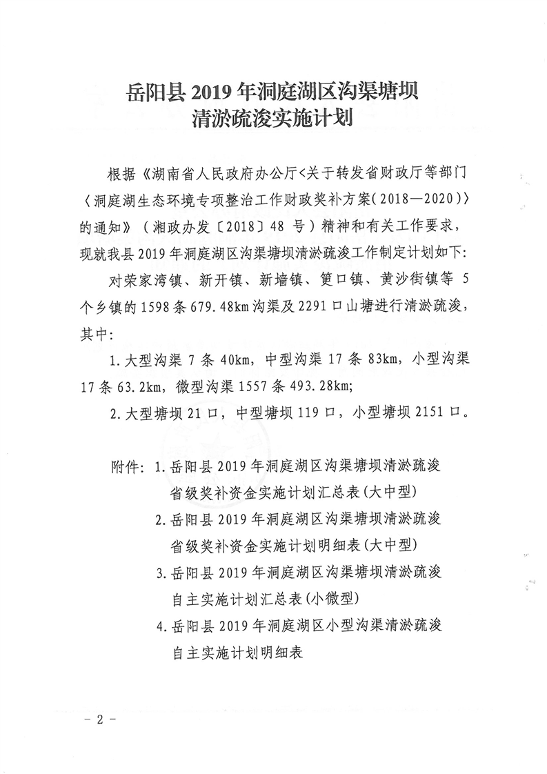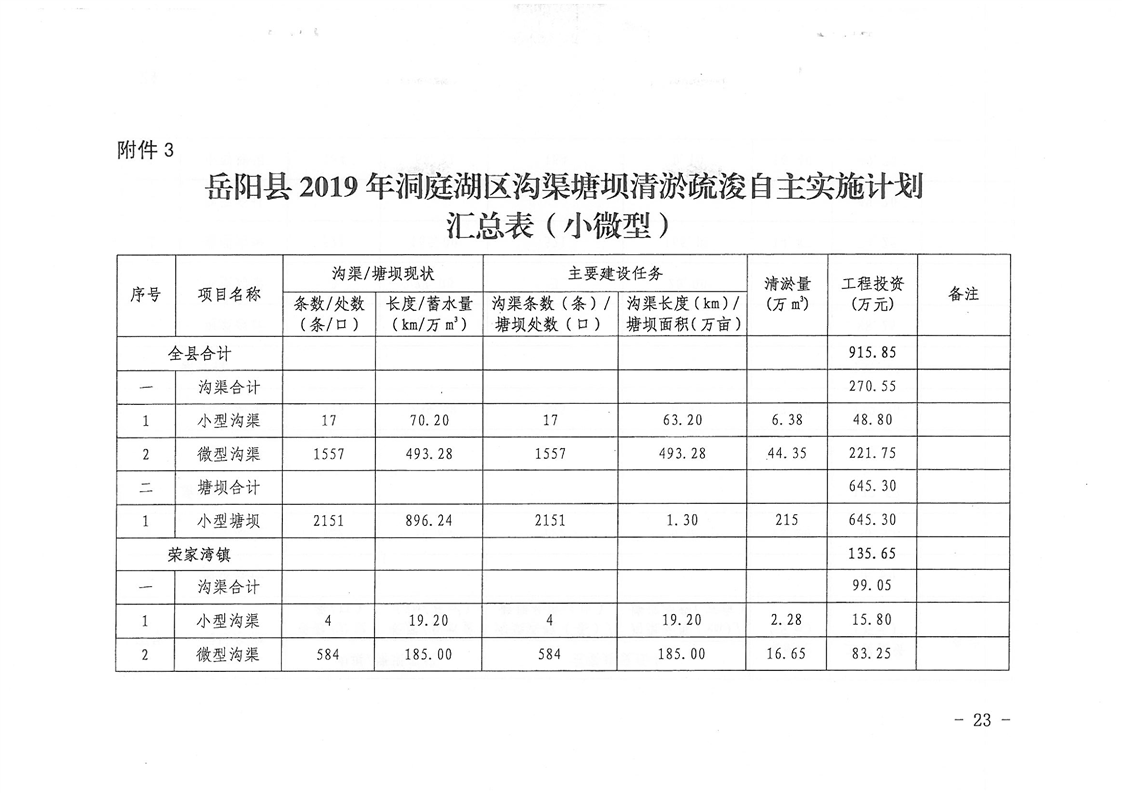 嶽陽縣2019年洞庭湖區溝渠塘壩清淤疏浚實施計劃