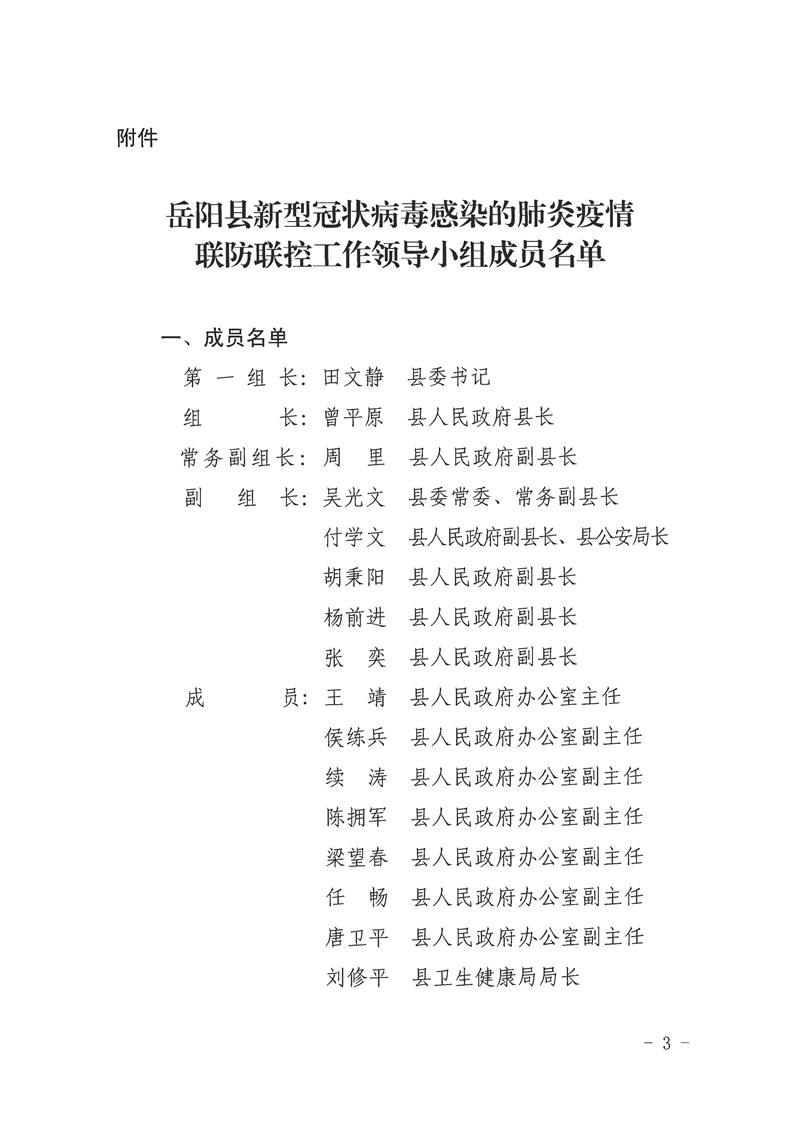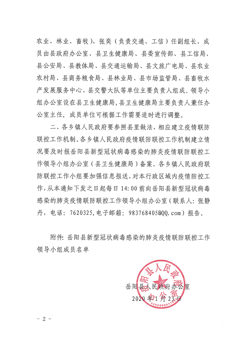 關於建立嶽陽縣疫情聯防聯控工作領導機製的通知