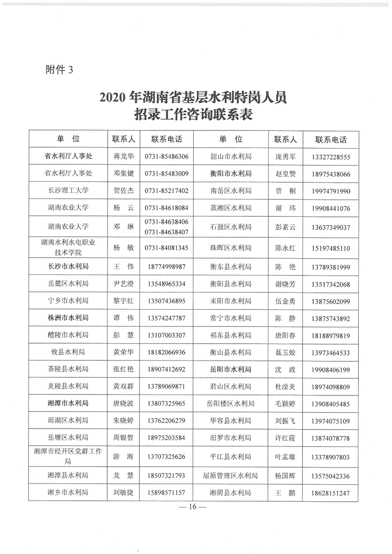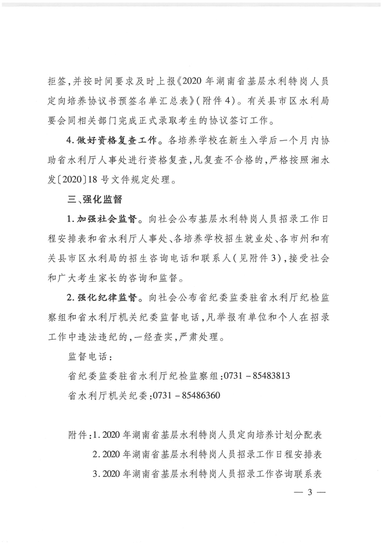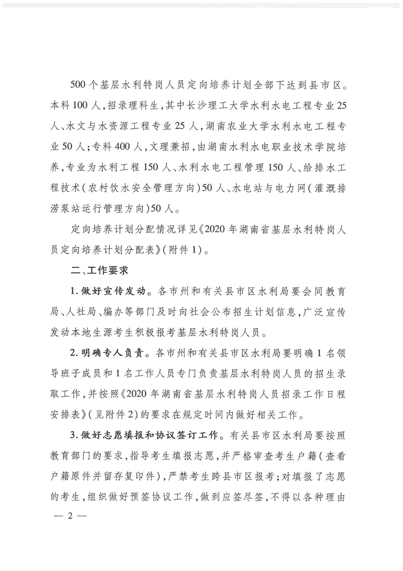 湖南省水利廳《關於下達2020年基層水利特崗人員定向培養計劃的通知》
