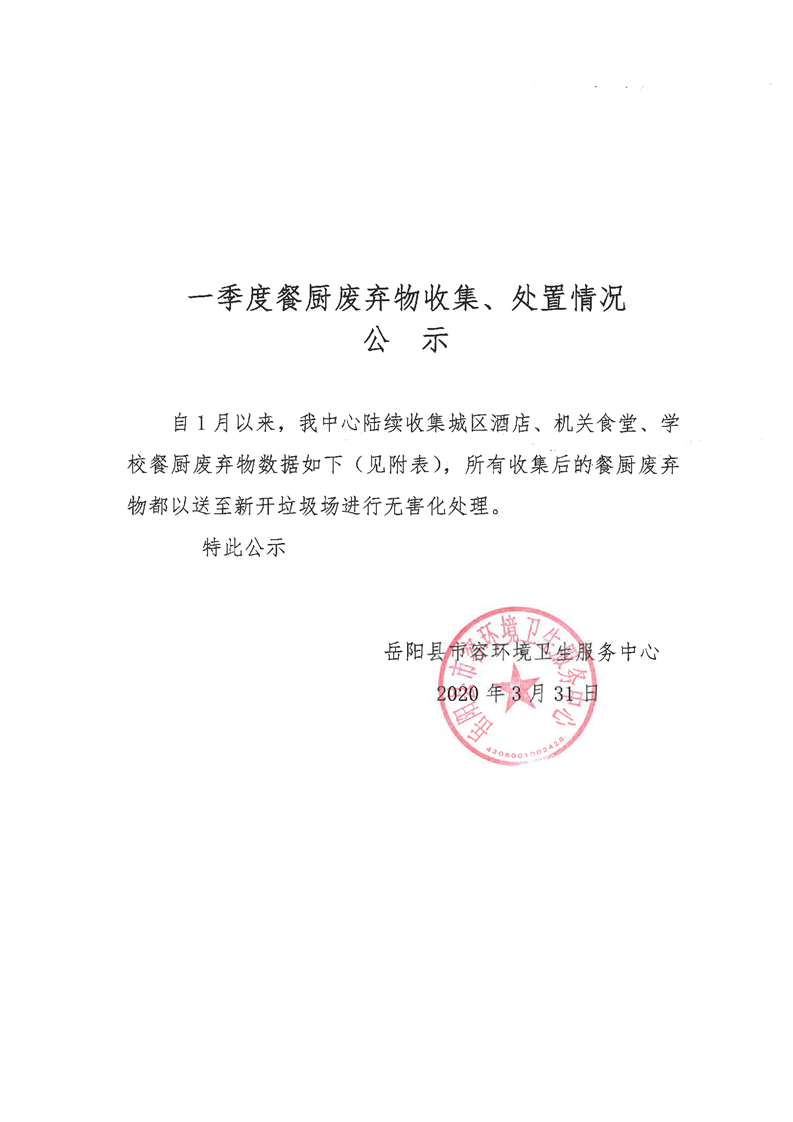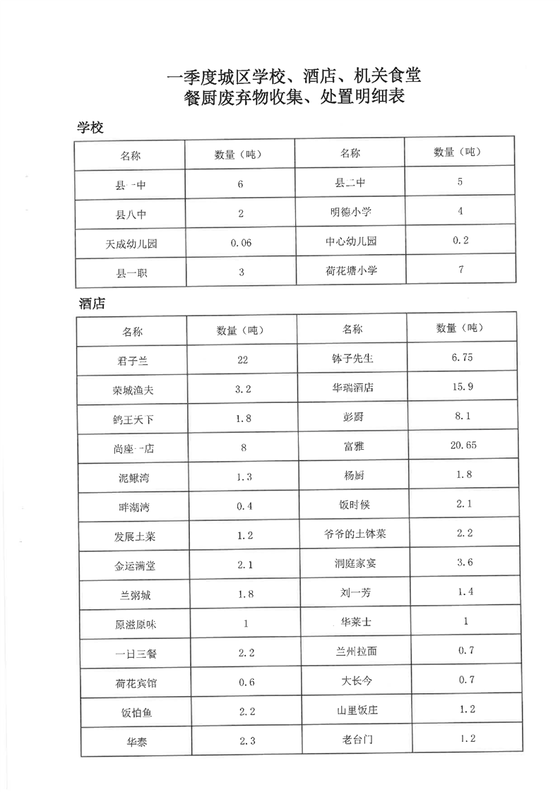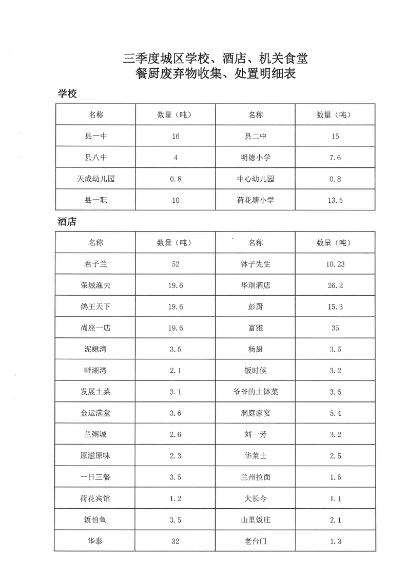 環衛中心2020年1-3季度餐廚垃圾收集公示台賬