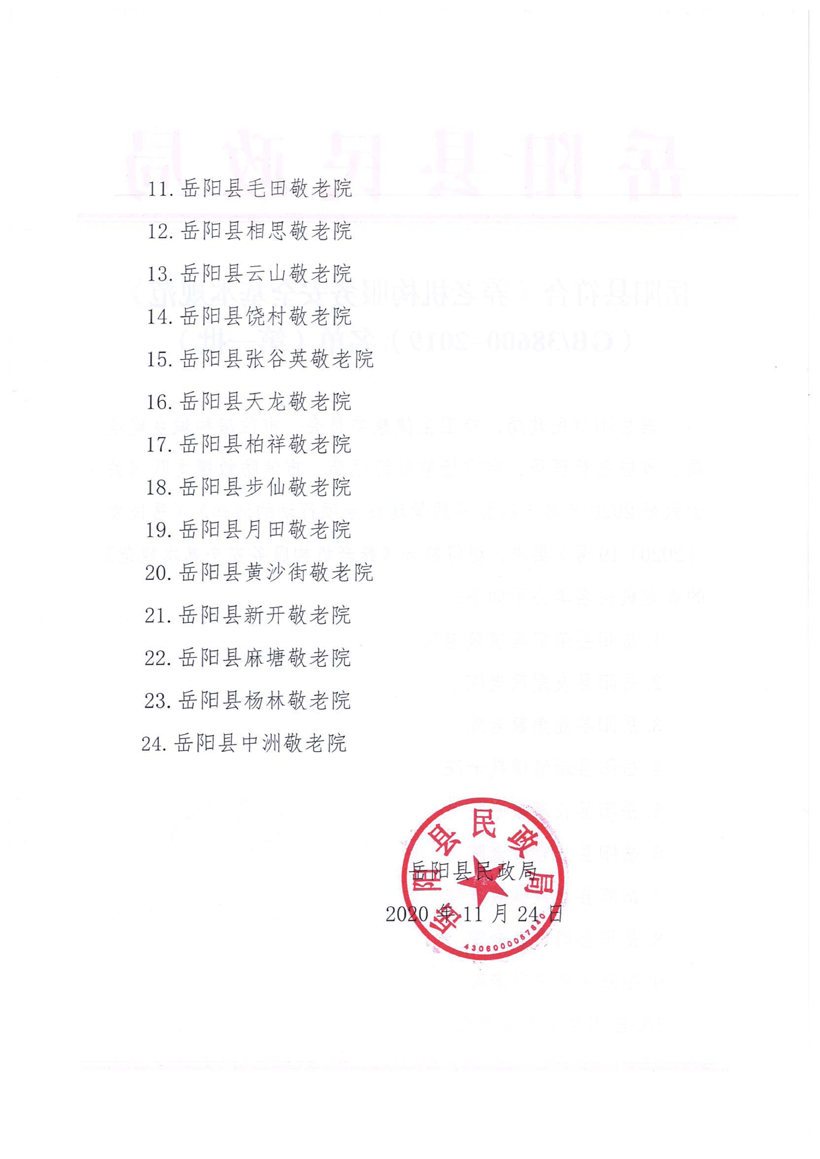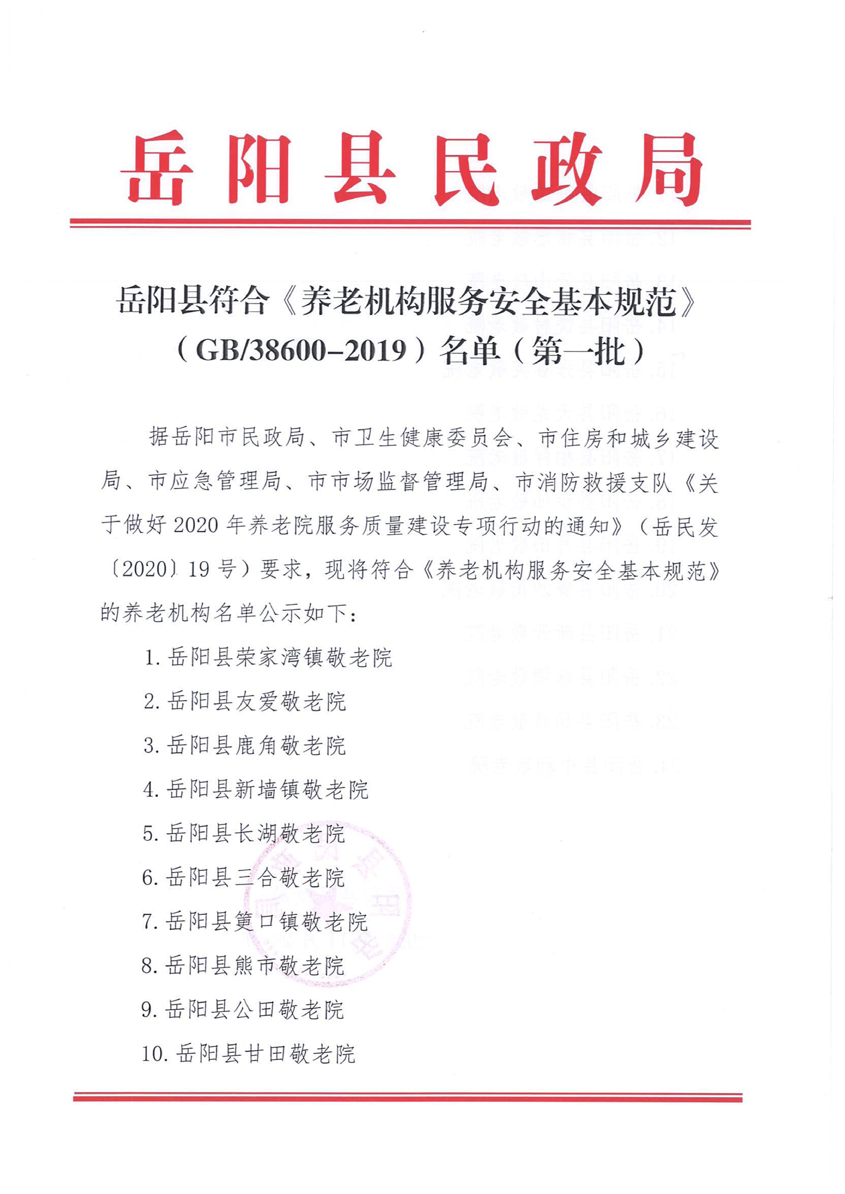 嶽陽縣符合《養老機構服務安全基本規範》(GB/38600-2019)名單(第一批)