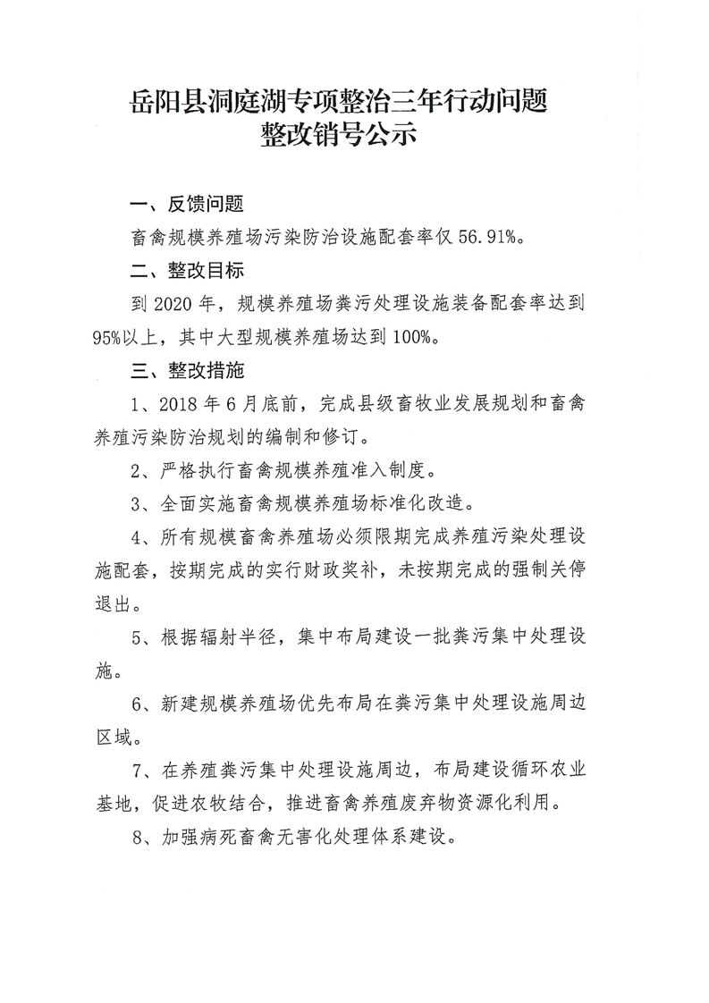 嶽陽縣洞庭湖專項整治三年行動整改公示表