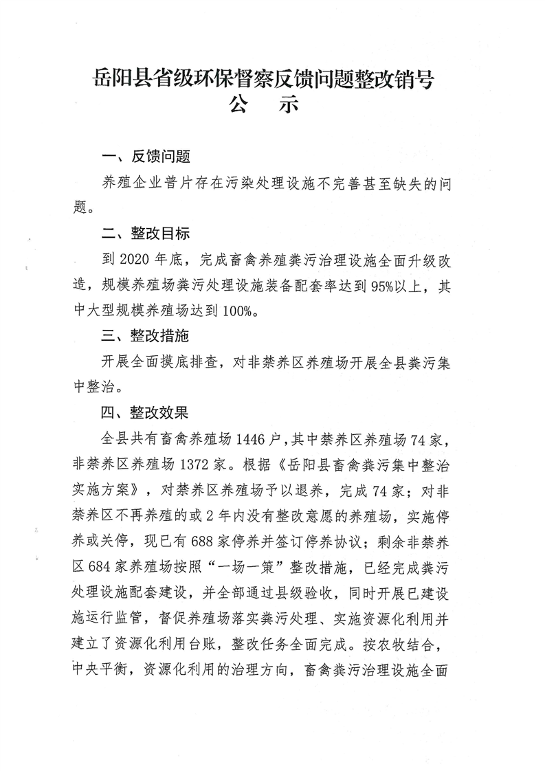嶽陽縣省級環保督察反饋問題整改公示表2