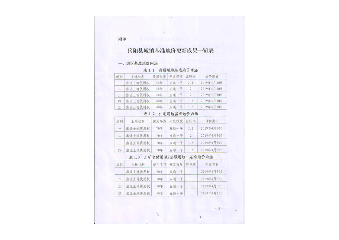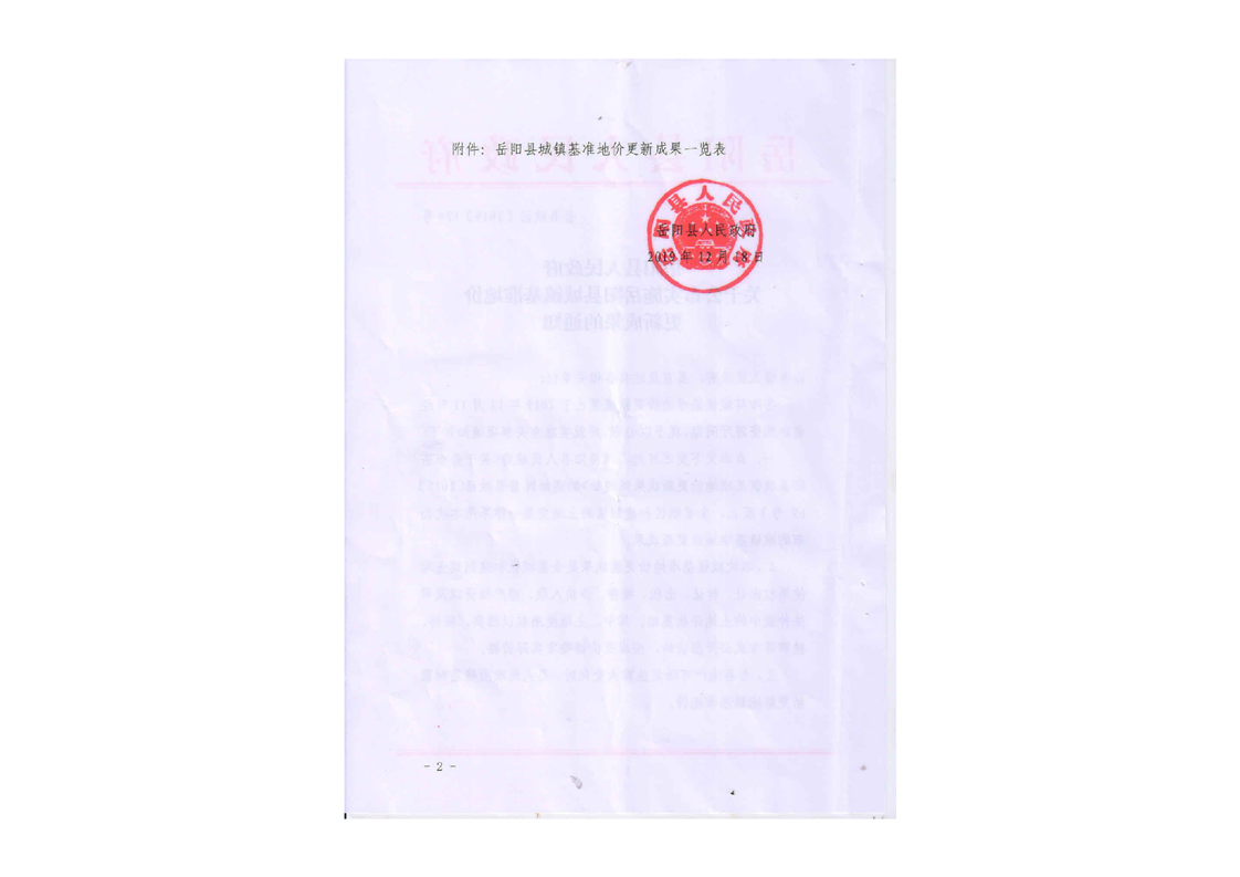 關於公布實施嶽陽縣城鎮基準地價更新成果的通知