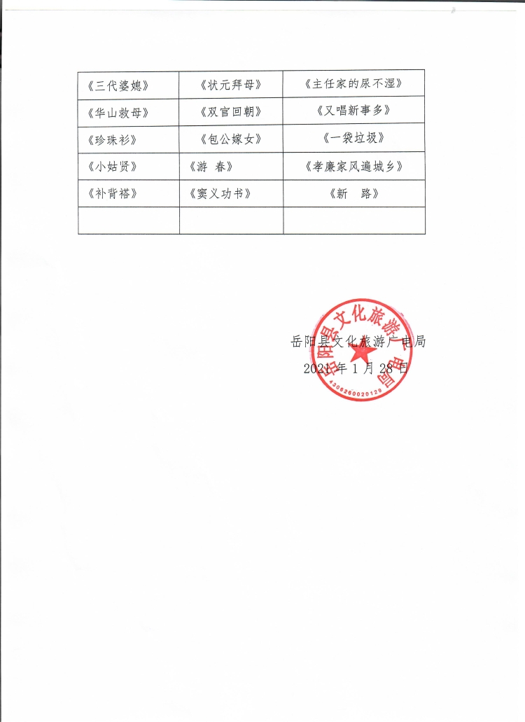 嶽陽縣“湖南公共文化進村入戶·戲曲進鄉村”劇(節)目目錄公示