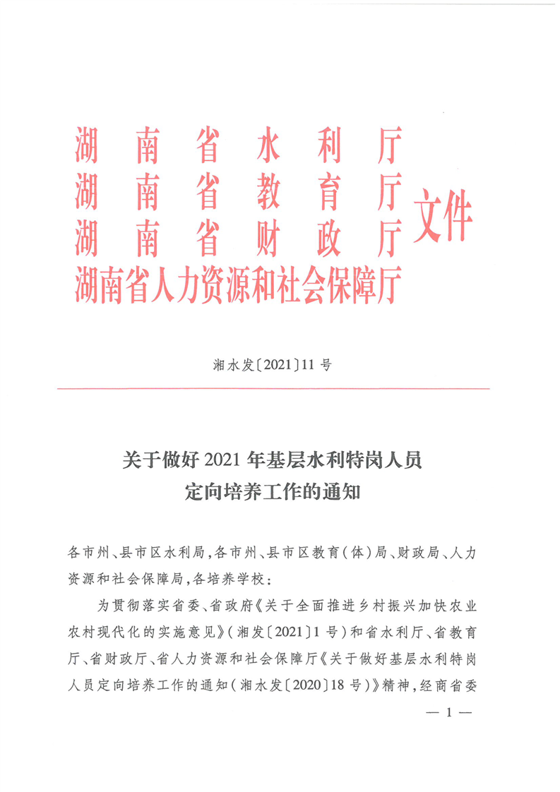 關於做好2021年基層水利特崗人員定向培養工作的通知