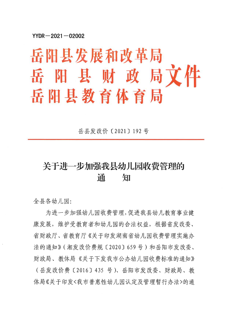 關於進一步加強我縣幼兒園收費管理的通知