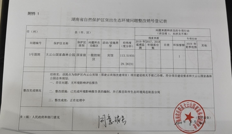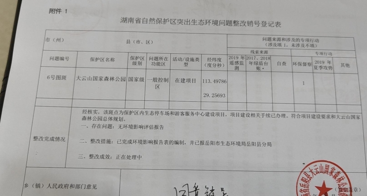 嶽陽縣大雲山國家森林公園管理處關於湖南省自然保護區突出整體環境問題整改情況的公示