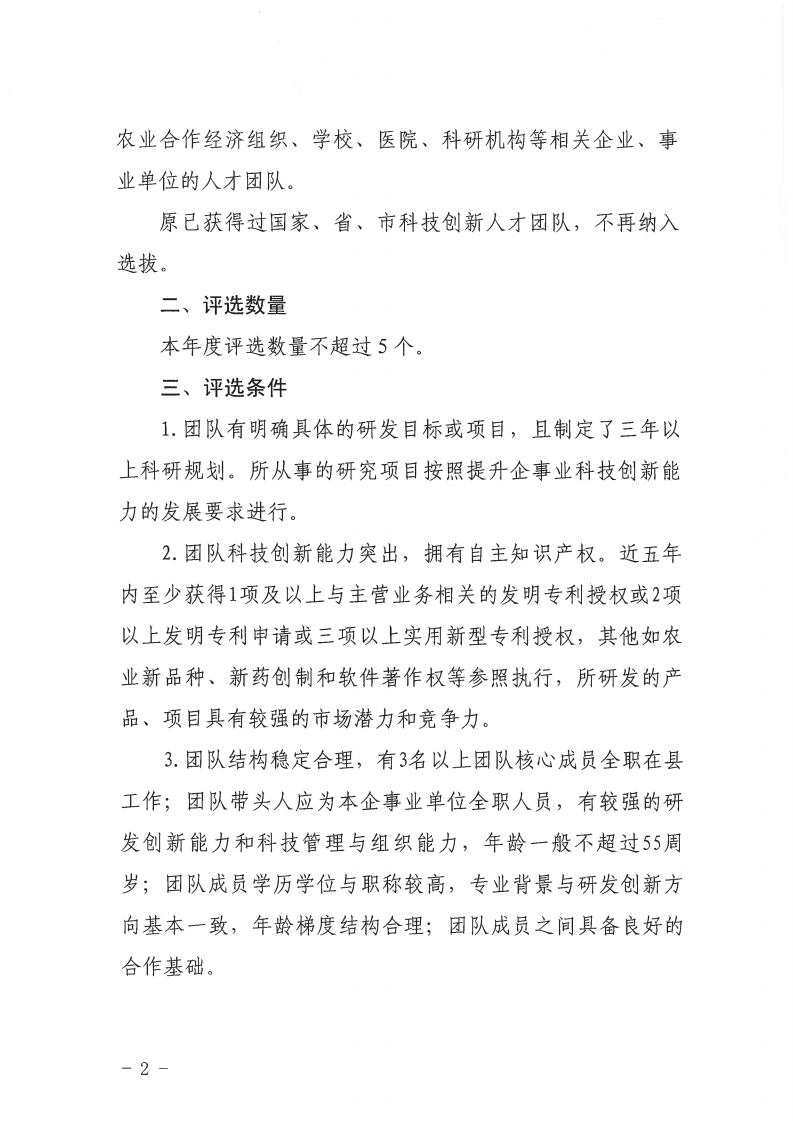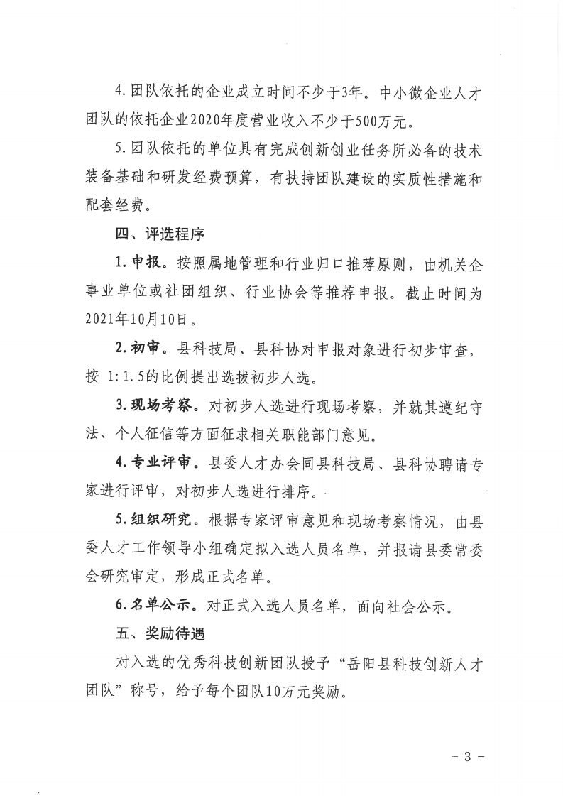 關於開展2021年度嶽陽縣科技創新人才團隊評選工作的通知