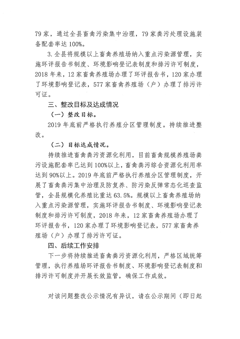 關於全國人大執法檢查指出加強技術指導和統籌管理,積極發展規模化養殖,進一步加快建立畜禽糞便汙染資源化利用機製,推進糞汙還田利用問題整改情況公示1